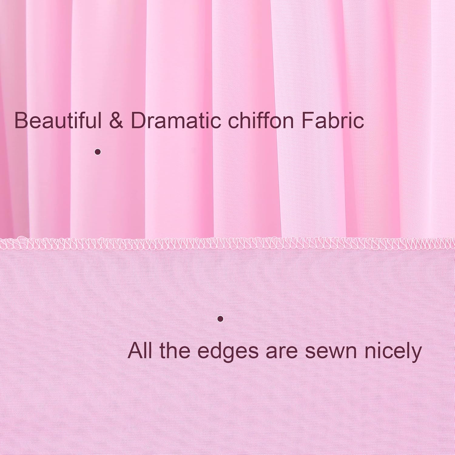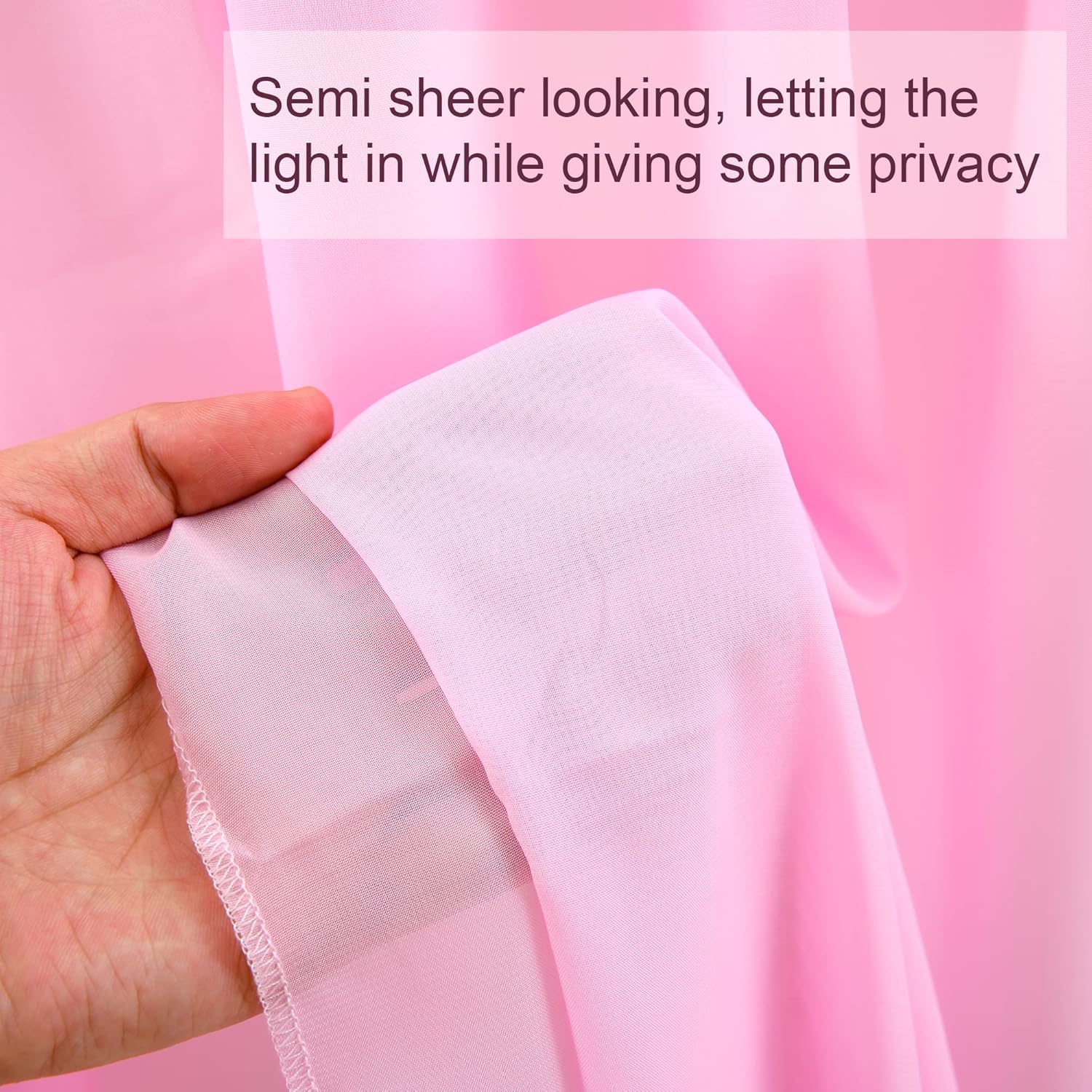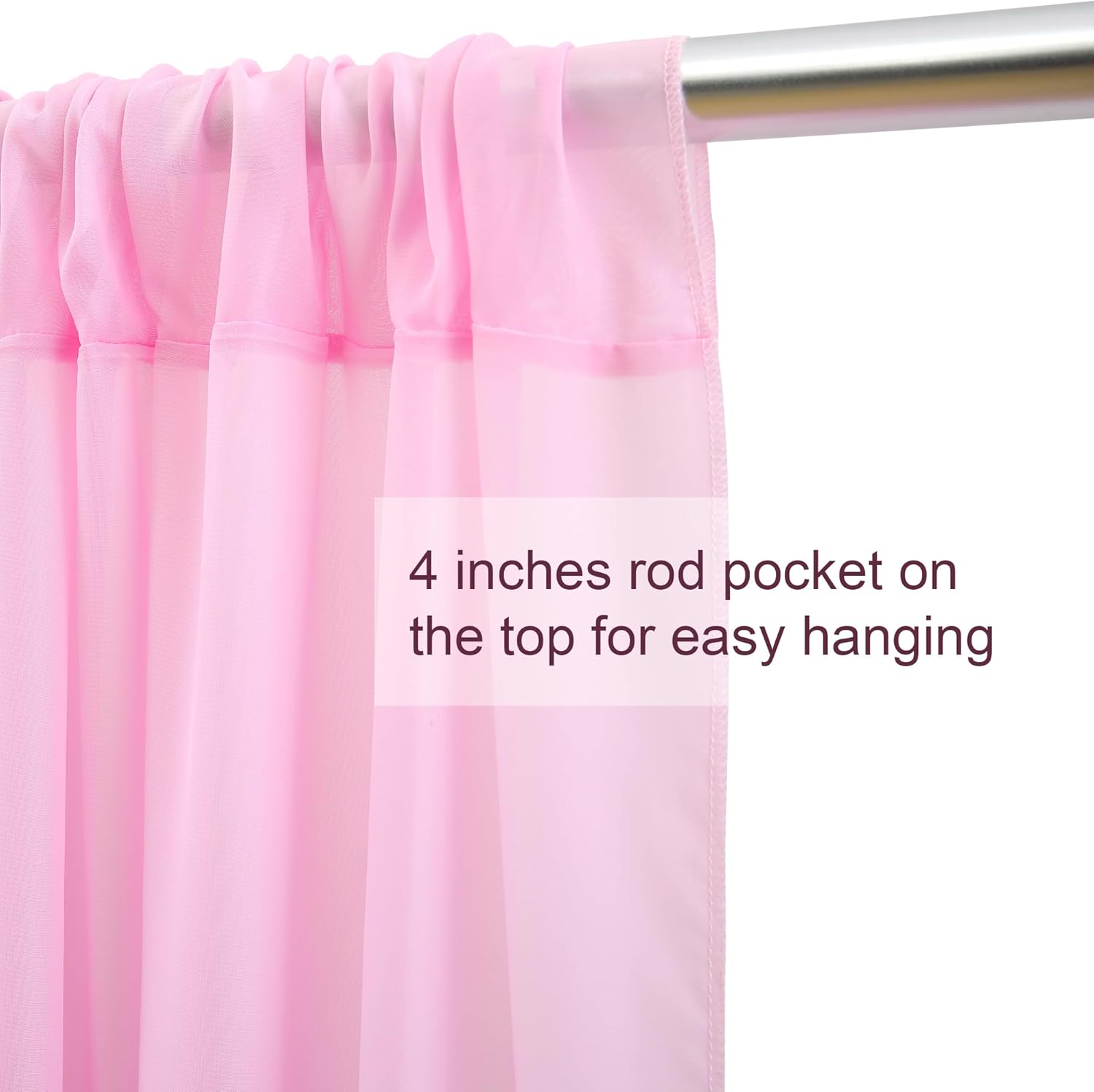 - 【Elegant Draping Fabric】- Pink backdrop curtains are made of premium quality glossy chiffon fabric, soft and sturdy. The sheerness is perfect for putting curtain lights behind them. Easy to get these sheer backdrop curtains crease and wrinkle free.