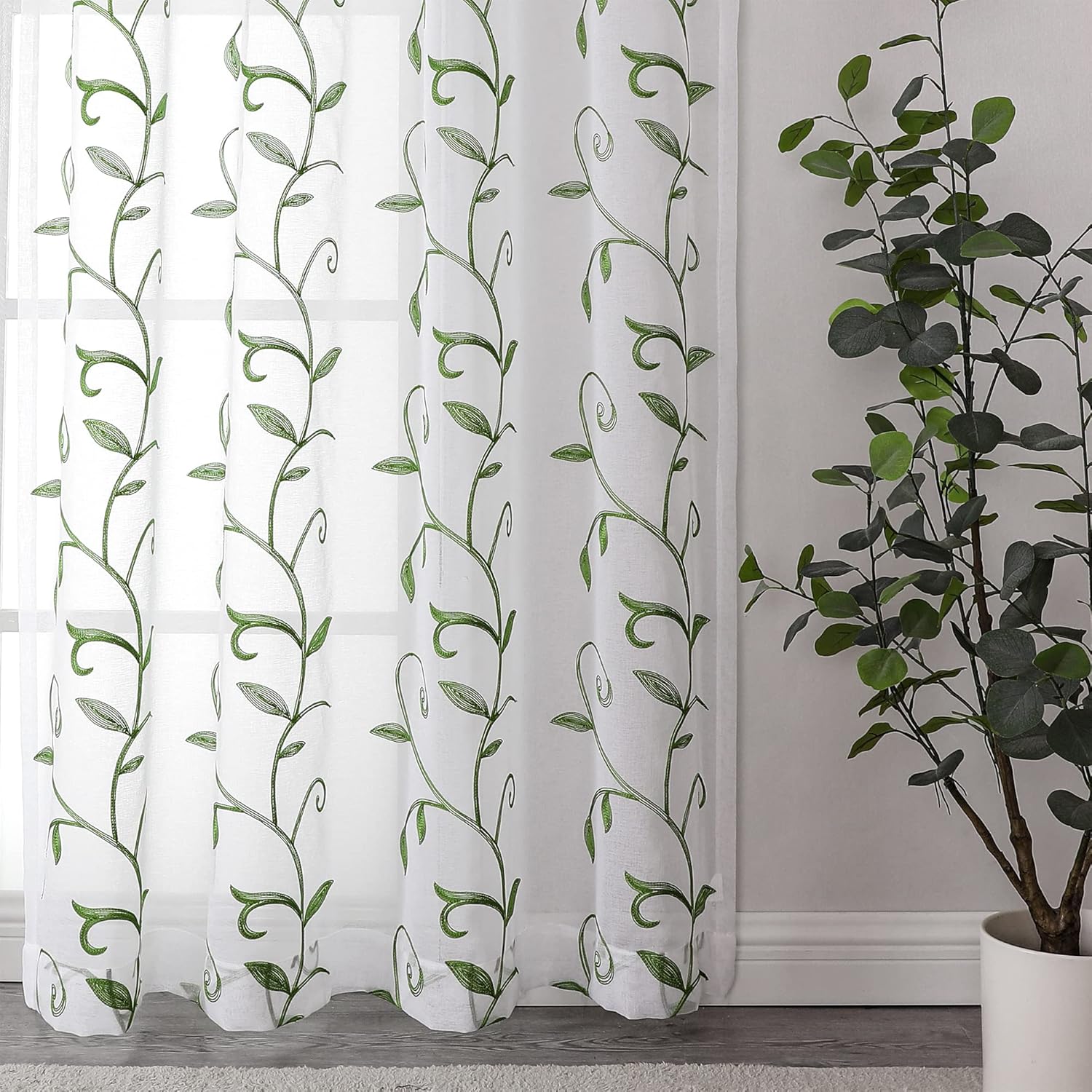 - 【FANCY FOIL PRINT】 These elegant sheer curtains designed with foil printed leaves pattern, which features smooth fabric with silky touch and a beautiful drape that bring tropical charm and luxury to your interior. Perfect for bedroom, living room, dinnning room or kitchen windows.