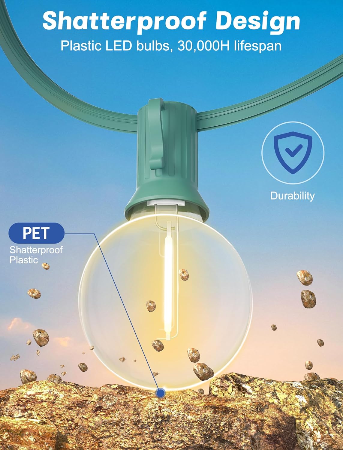 - Shatterproof & Dimmable: G40 LED Christmas lights are made of plastic which much shatterproof than traditional glass incandescent lights. Low working temperature, safer to touch. Outside Christmas lights are dimmable, dimmer is required for dimming(NOT Included dimmer). Globe lights outdoor are perfect for permanent outdoor lighting