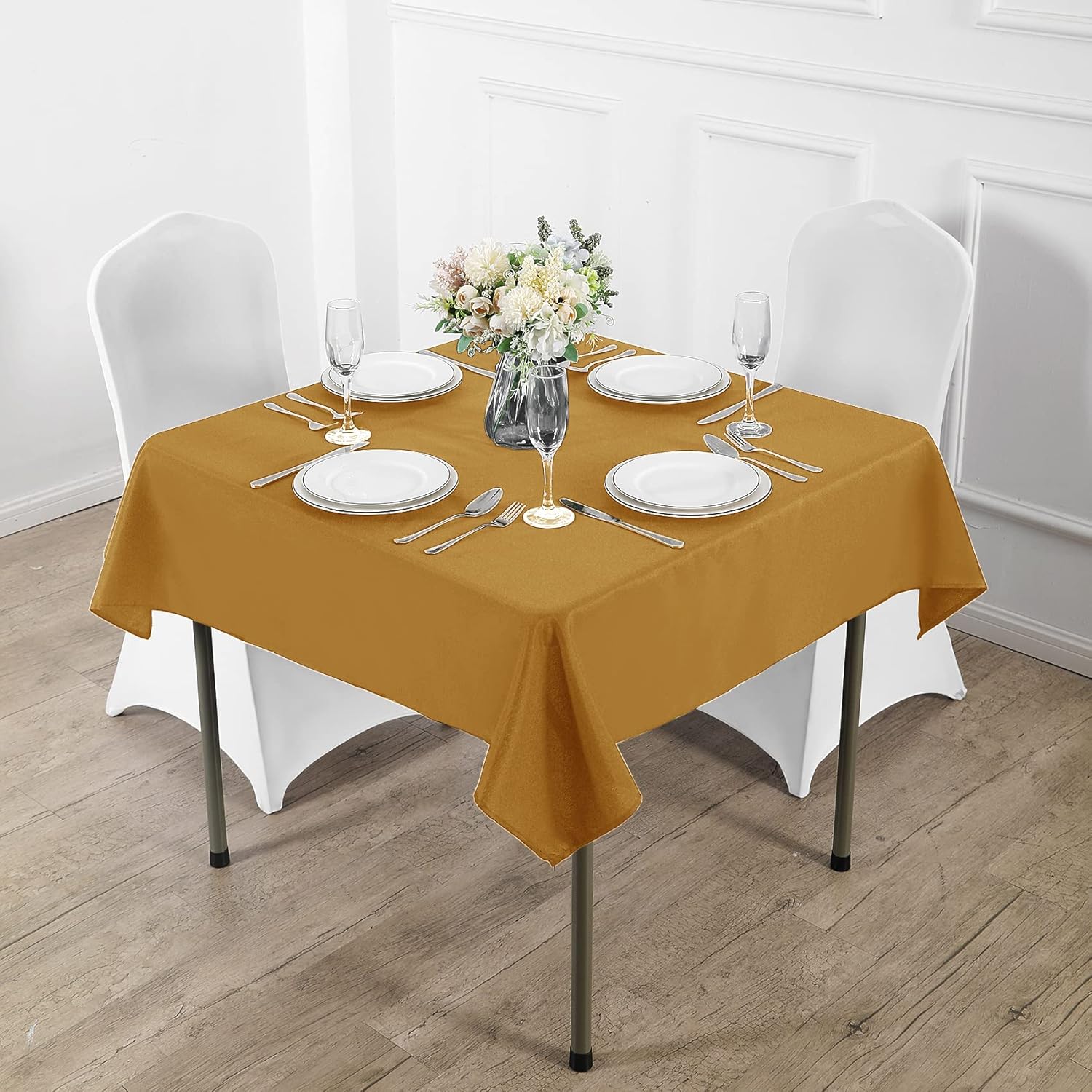 Fokitut 2 Pack Waterproof Square Tablecloth, 52x52 Inch, Stain Resistant and Wrinkle Polyester Table Cloth, Fabric Table Cover for Kitchen Dining, Wedding, Party, Holiday Dinner-Gold