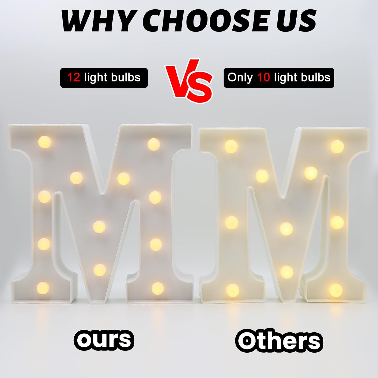 LED Marquee Letters Lights Sign-M, HXWEIYE Led Letters Lights 26 Alphabet, Light Up Number 0-9 Letters Sign for Party Home Birthday Anniversary Battery Powered Lighted Letters(Warm White)