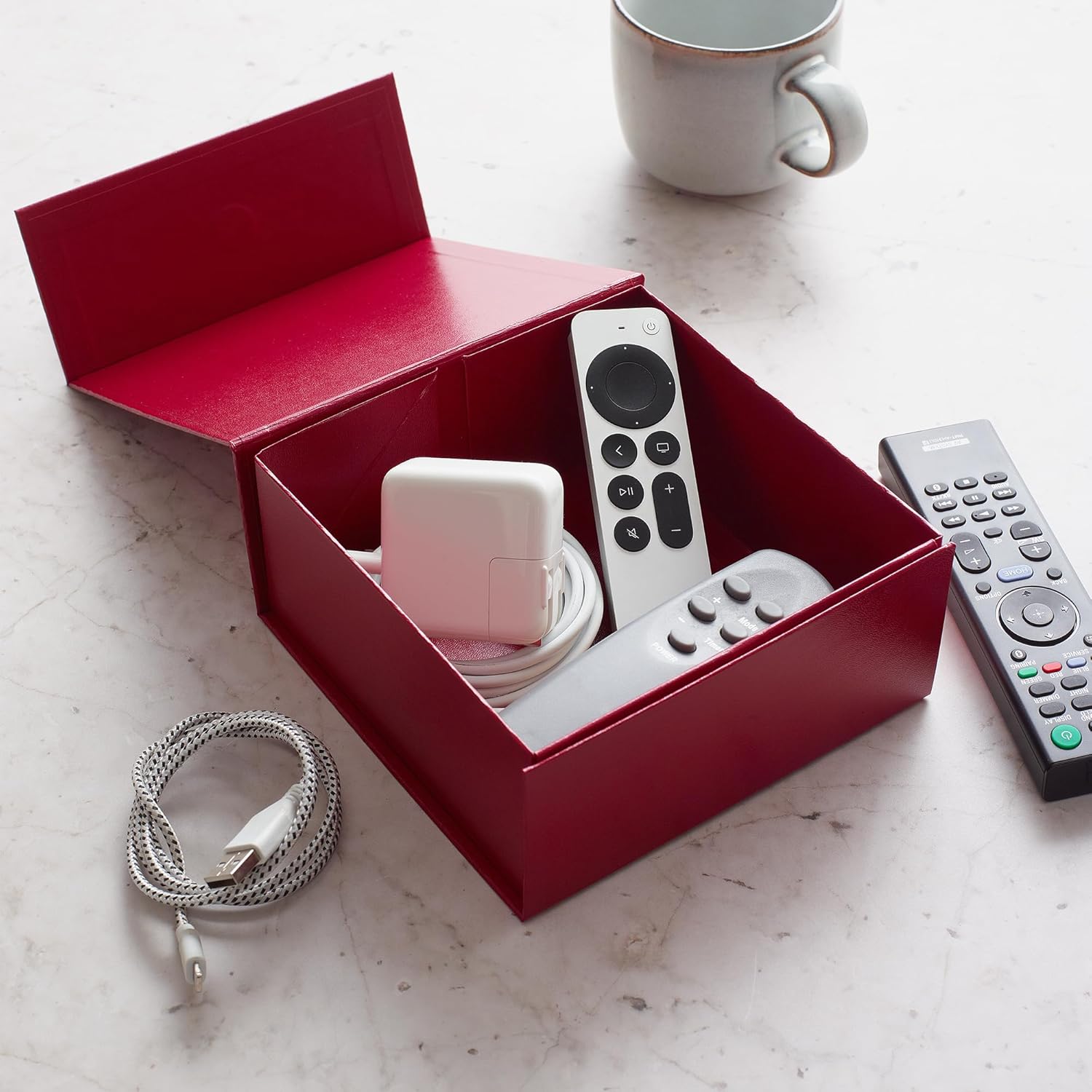 CECOBOX - Gift Boxes with Lids for Presents 6"x6"x2.75" - Matte, Collapsible Magnetic Closure Gift Box - Groomsmen & Bridesmaid Proposal Boxes, Wedding, PR, Birthdays, Holidays (Scarlet Leatherette)