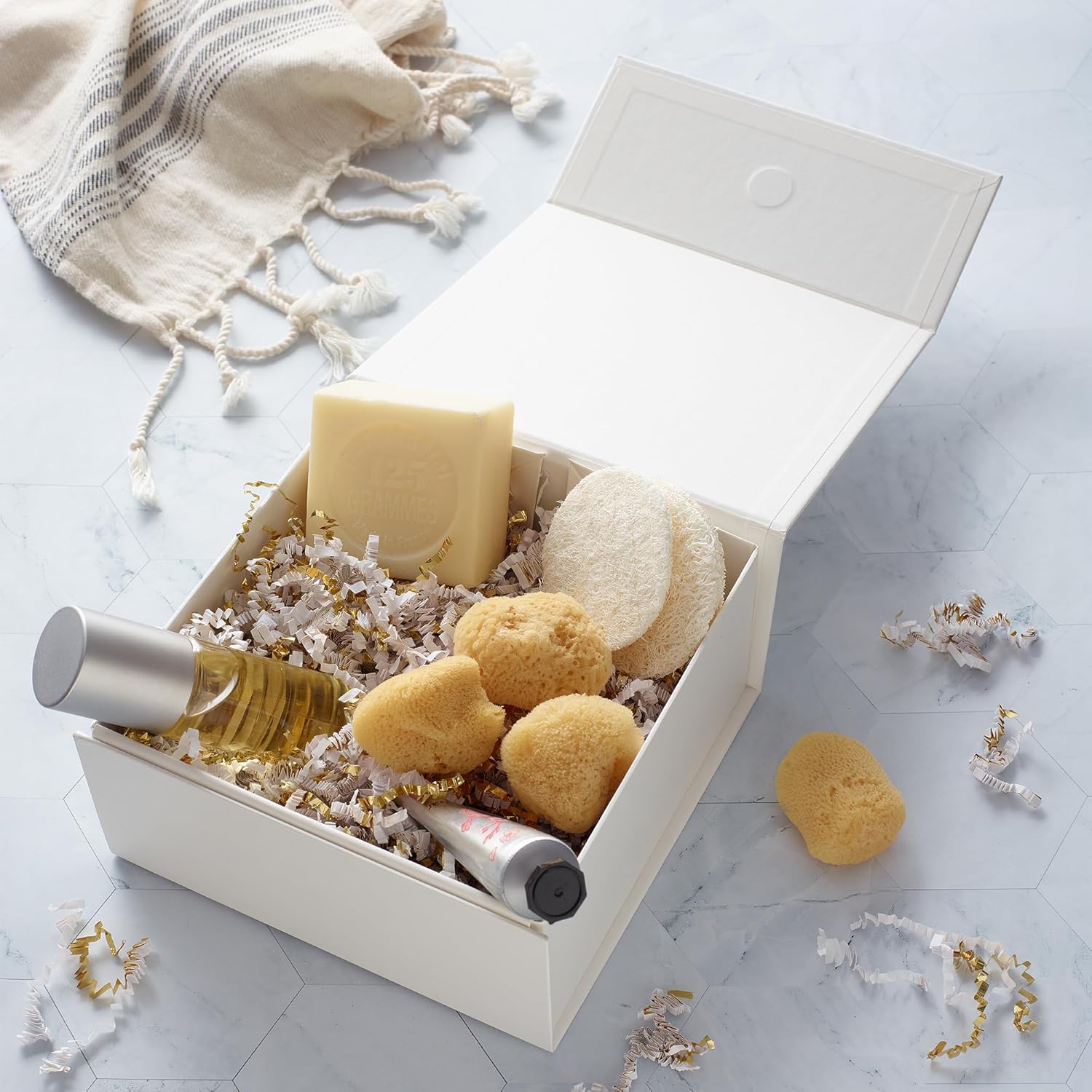 - 𝗘𝗔𝗦𝗬 𝗦𝗘𝗧𝗨𝗣 𝗪𝗜𝗧𝗛 𝗠𝗔𝗚𝗡𝗘𝗧𝗜𝗖 𝗖𝗟𝗢𝗦𝗨𝗥𝗘, 𝗡𝗢 𝗧𝗔𝗣𝗘 𝗡𝗘𝗘𝗗𝗘𝗗: Simply unfold the box, push down a flap, and pop the gift box into shape without tools or tape! The magnetic closure automatically closes and secures the box in shape with a satisfying and luxurious magnetic SNAP!