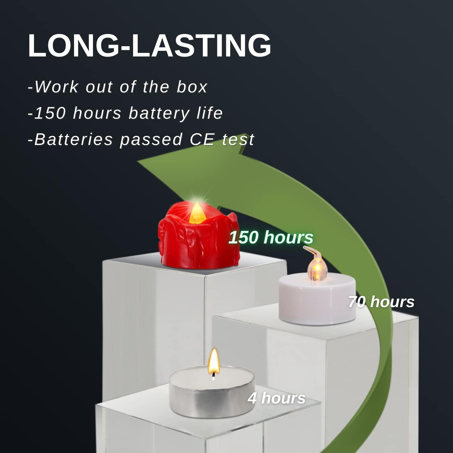 Homemory 24-Pack Halloween Red Dripping Flameless Tea Lights, Battery Operated Flickering LED Candles, Safe for Pumpkins, Party & Holiday Decor, 1.58" D x 1.2" H, Warm White Glow