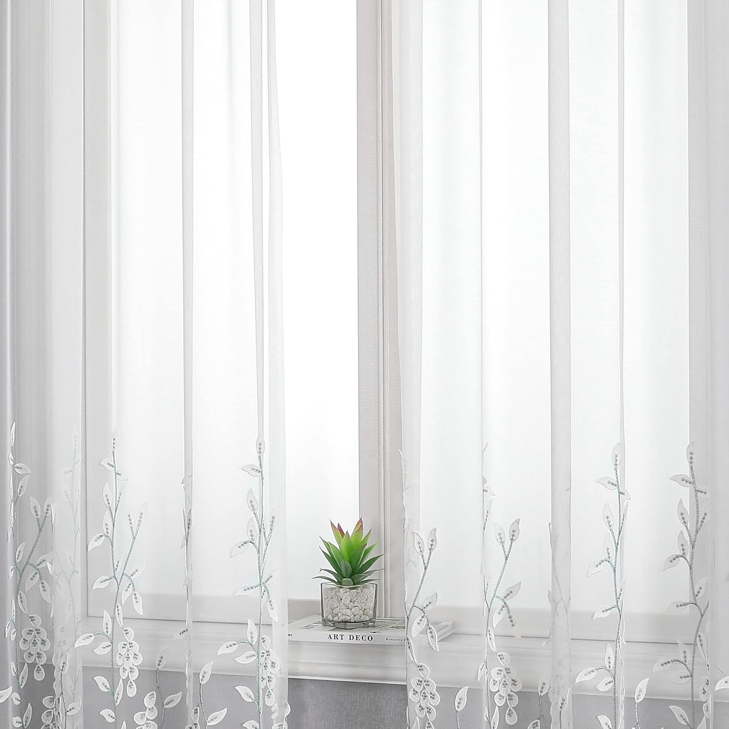 VISIONTEX White Sheer Voile Curtains, Decorative White Embossed Leaves Rod Pocket Window Drapes for Home Kitchen, Living Room and Bedroom 54 x 84 Inch, Set of 2 Curtain Panels