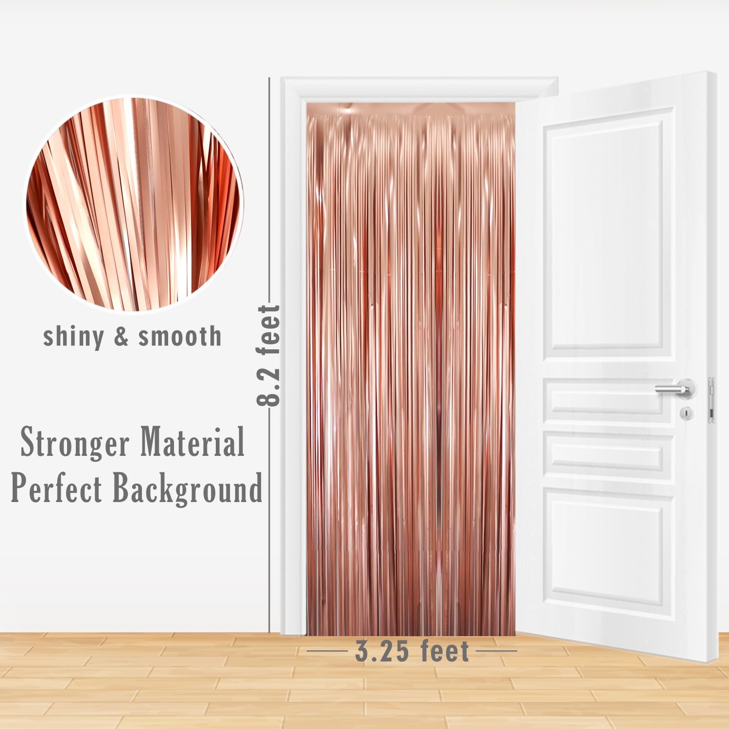 - Package Includes:5 pack matte rose gold foil fringe curtain,3.2 ft x 8.2 ft each,suitable for hanging on a door or coverage a wall fully