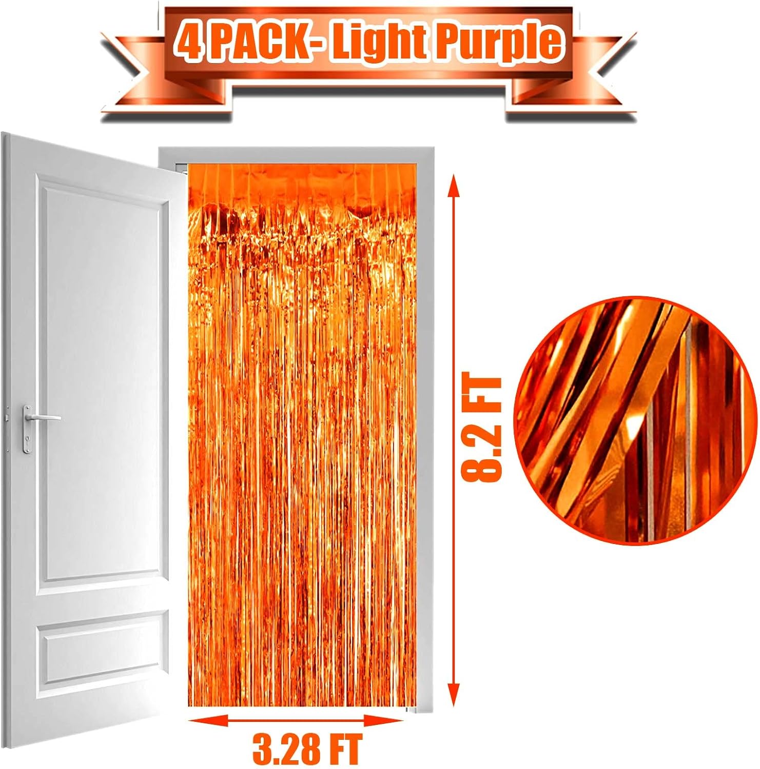 - The size of each metallic tinsel foil fringe curtain is 3.2 feet wide and 8 feet long, Package include 4 pack foil fringe curtains, suitable for hanging on a door or coverage a wall fully.
