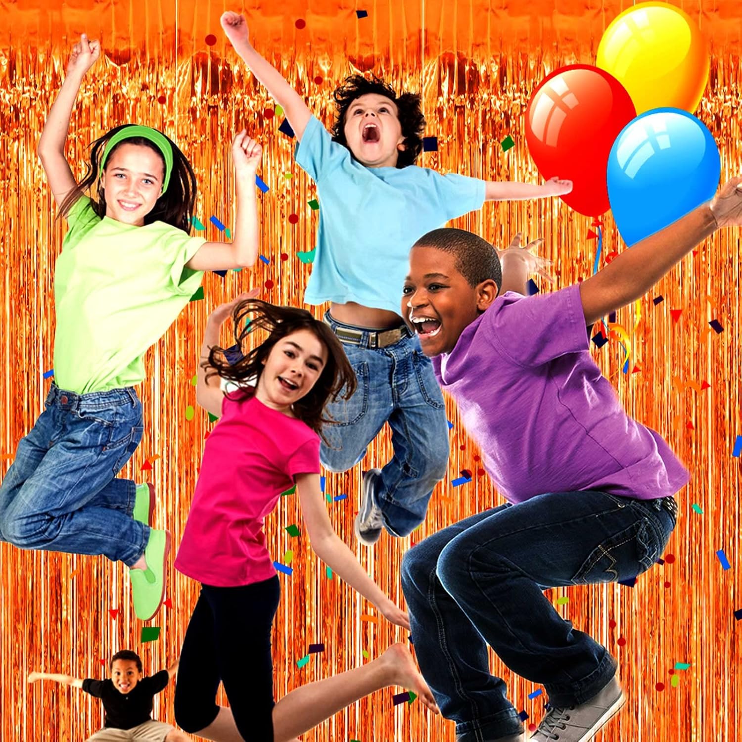 4 Pack Orange Foil Fringe Curtain Backdrop, 3.28Ft x 8.2Ft Metallic Tinsel Foil Fringe Streamers Curtains Party, Photo Booth Props, Birthday, 2022 Mother's Day Decoration Supplies