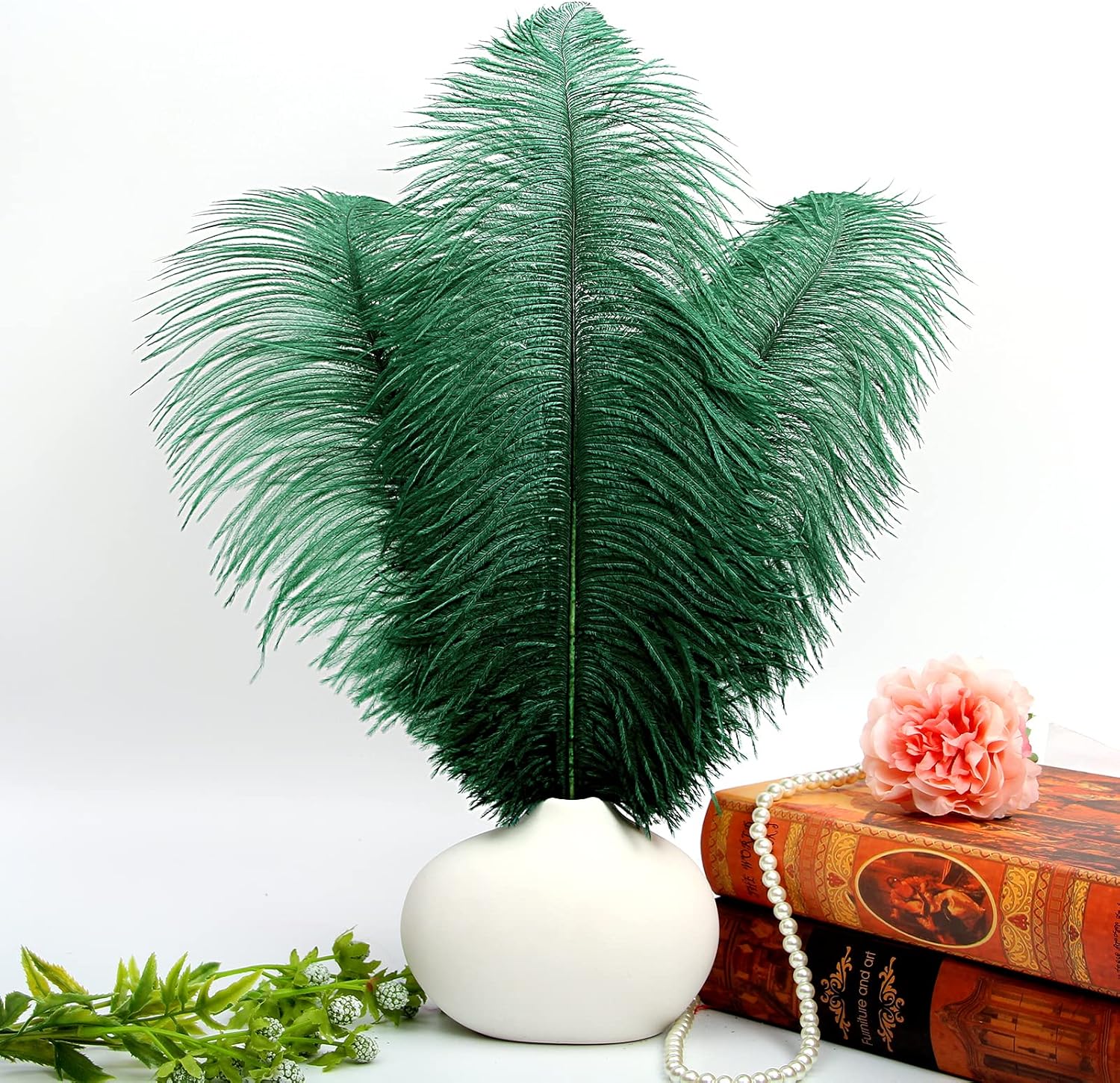 THARAHT Blackish Green Ostrich Feathers 12pcs Large Natural Bulk 16-18Inch 40cm-45cm for Wedding Party Centerpieces Mardi Gras Decoration Feather