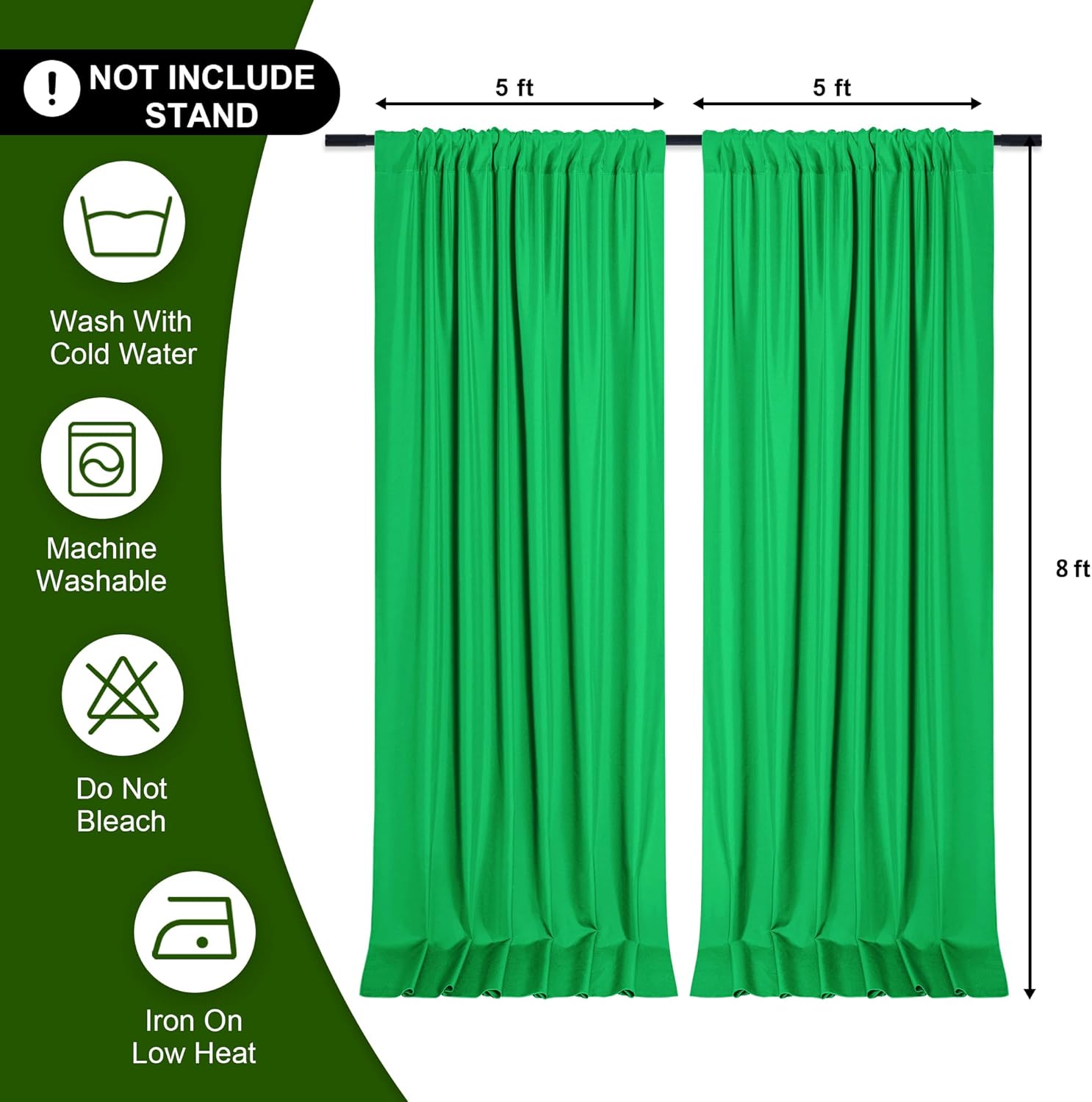 DWCN 10x8 FT Green Backdrop Curtains for Parties, Photography Backdrop Drapes with Rod Pockets for Wedding Decorations Stage Birthday Family Gatherings, 2 Panels 5ft x 8ft