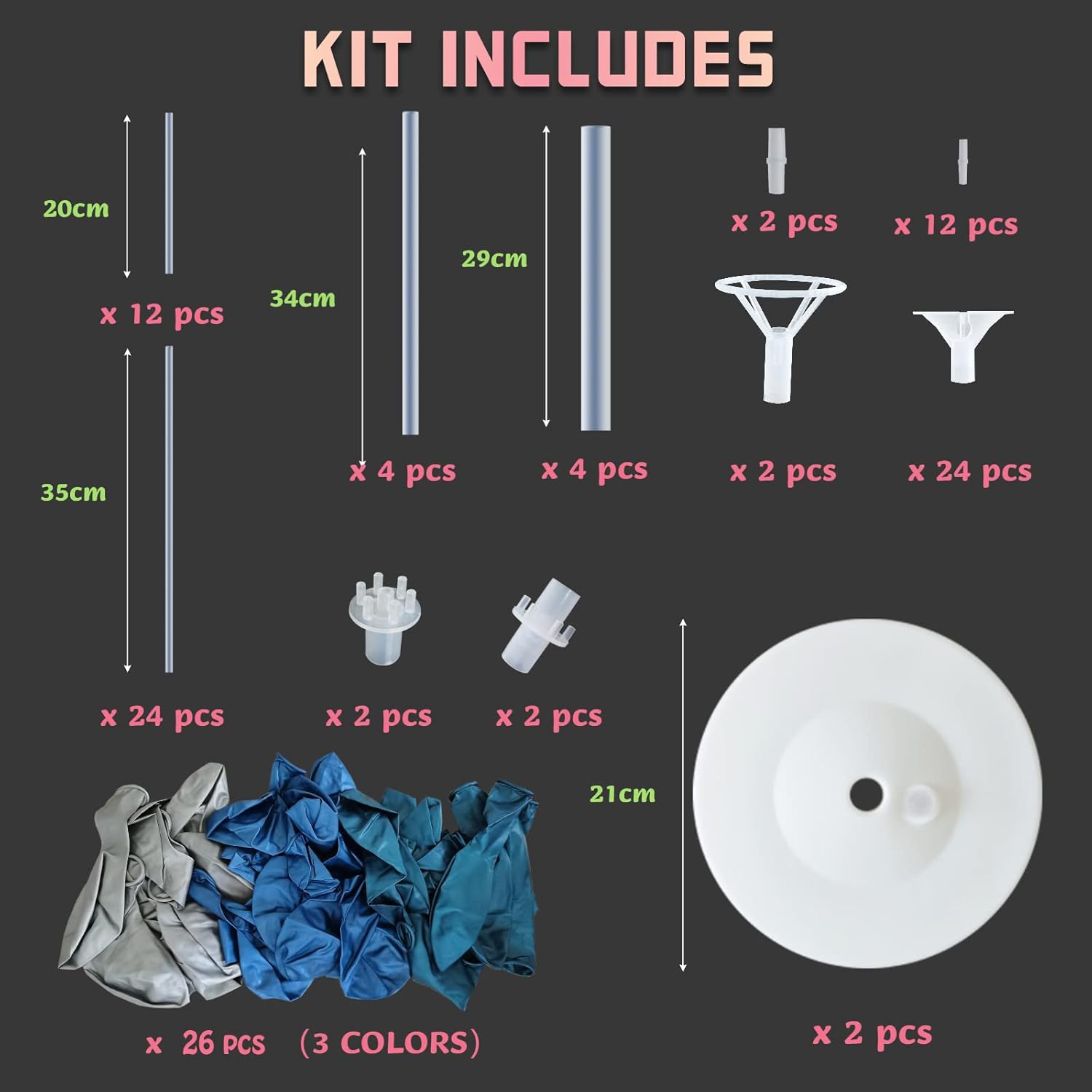 • 2 SETS BALLOONS STAND KIT INCLUDES - Kits Includes All The Necessary Component Parts for Two Balloon Columns, All in One Bag..Each Balloon Stand Comes in 2 Different Height Sizes.Perfect Size for Table & Ground.