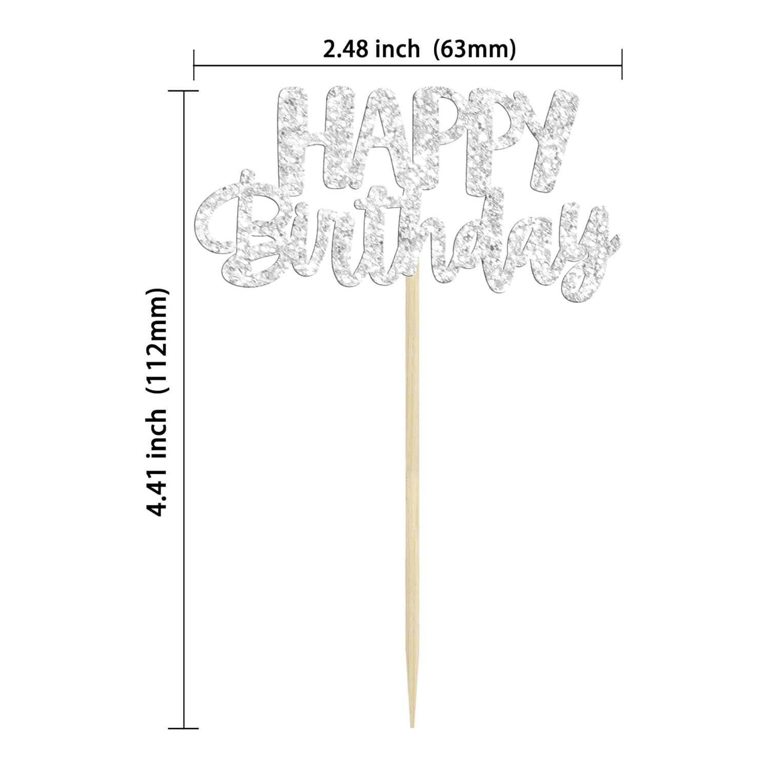 - ๐๐Package included: 24Pcs Silver Happy Birthday Cupcake Toppers. You can insert into your cake directly, which make your cake more interesting.