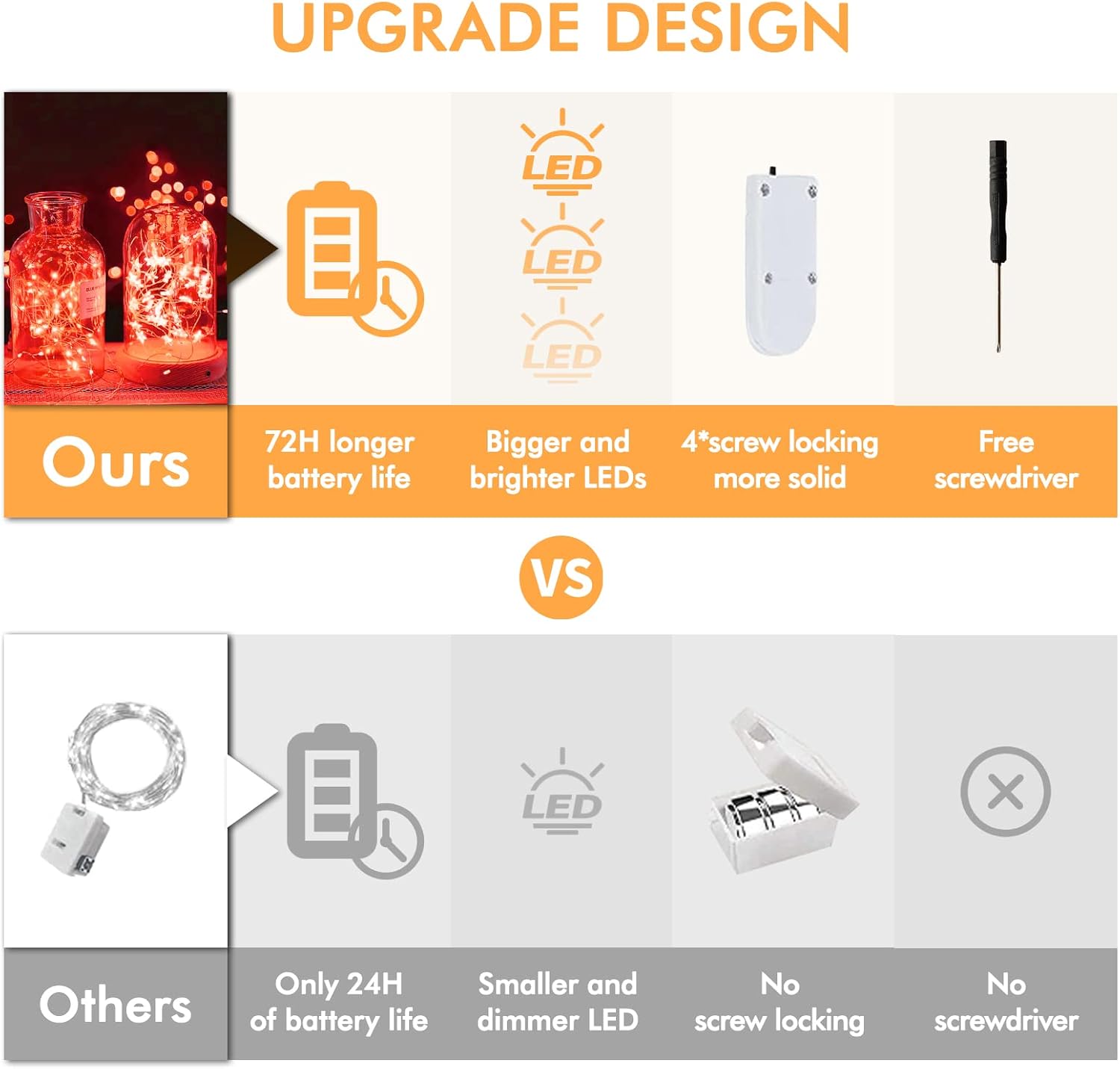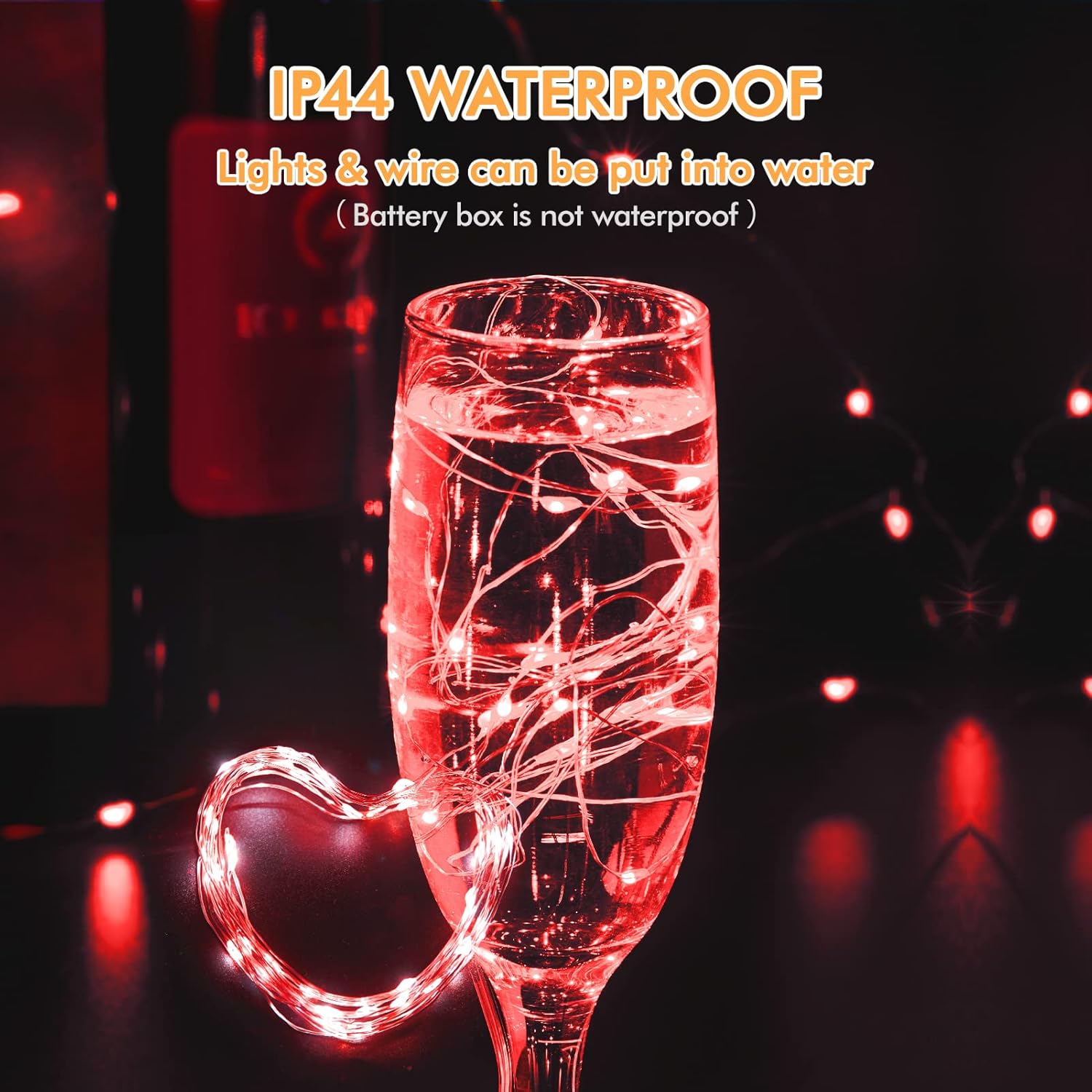 - ✨【12 Packs High-Quality Fairy Lights】 There are 12 packs of LED red fairy lights inside each box, Each string of fairy string lights is equipped with 20 super bright mini LDE lamp beads, The light flashes 360 degrees without glare and soft light to protect your eyes. The fairy lamp wire is 7ft long and made of soft copper wire. It can be bent into any shape you like or wrapped around anything you want to decorate. These fairy lights can make everything that is decorated by them dazzlin