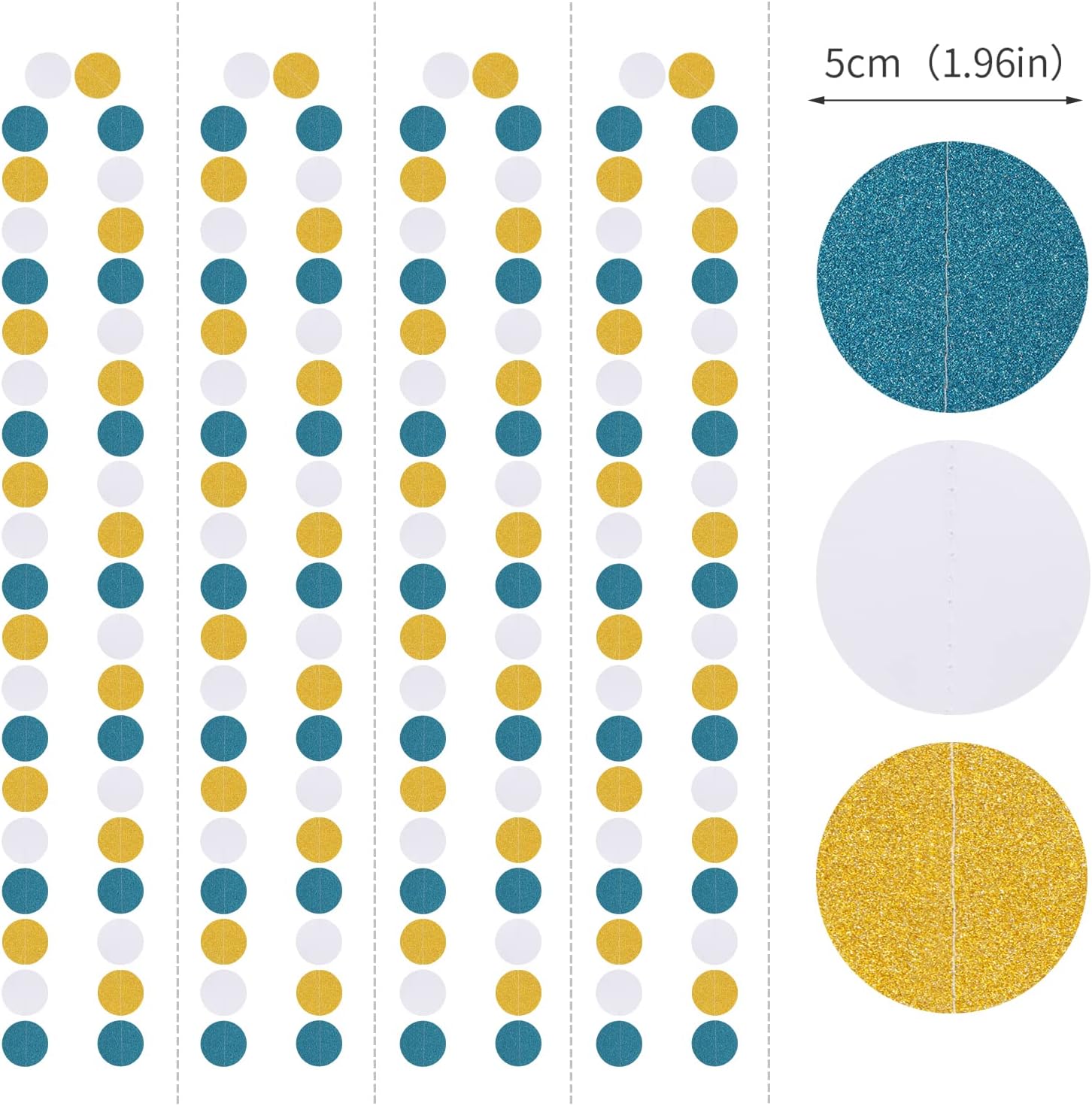 - 【Material】The material is eco-friendly teal white gold paper.You can cut to any length you want if you need shorter length.The circles are cut very neatly.