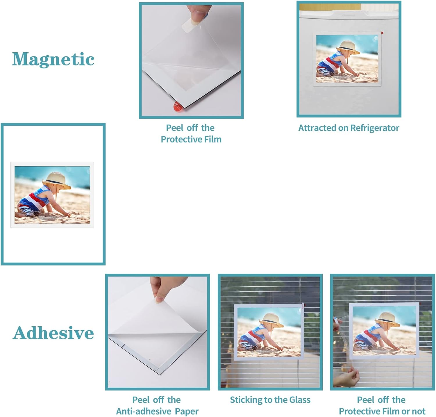- White frames highlight your pictures, brighten your home, showcase your memories vividly. 12 packs of magnetic peel and stick frames meet your home decor and business needs at one time.