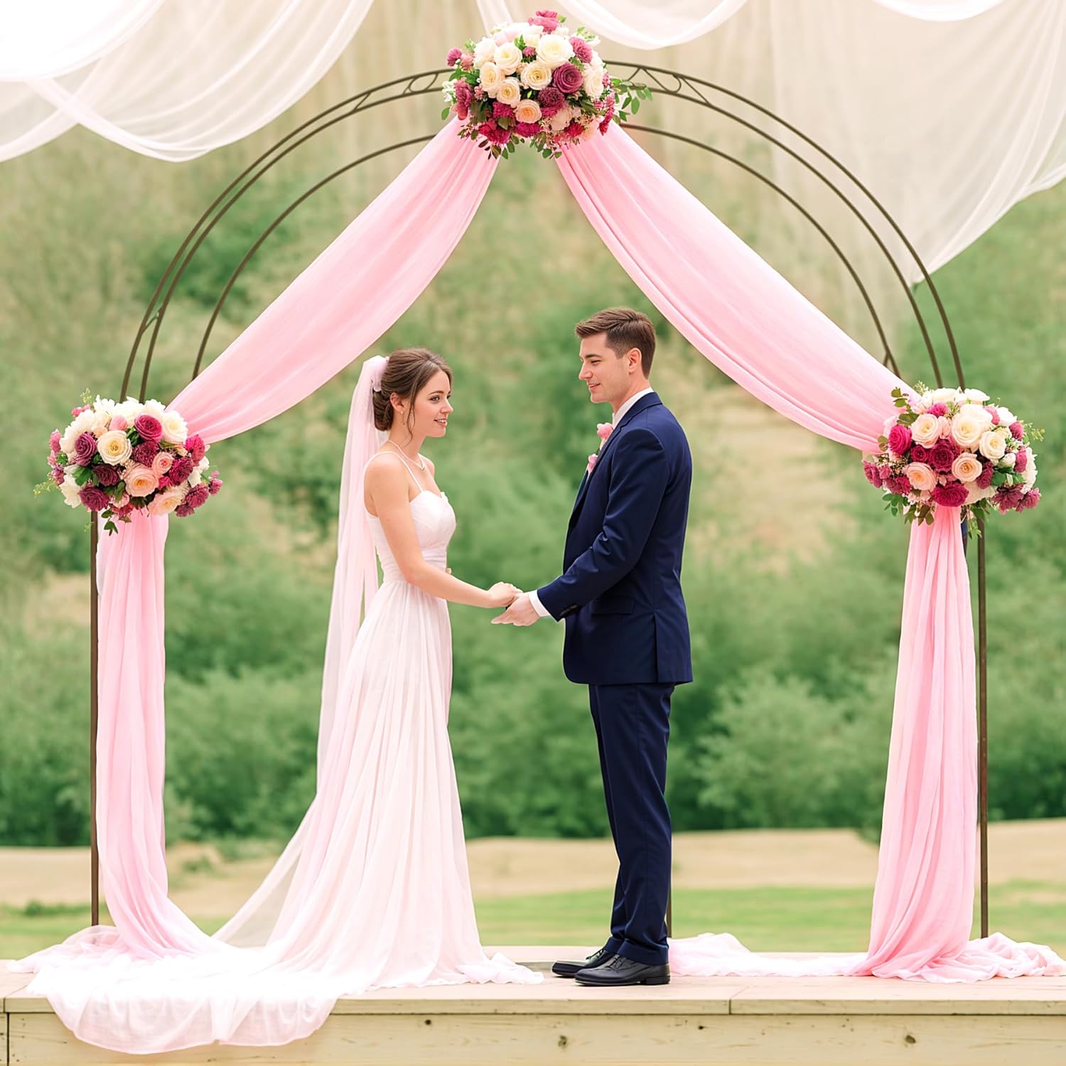 - Elegant Blush Wedding Arch Draping Fabric: Transform any arch into a romantic backdrop with beautiful Blush sheer fabric that resists wrinkles, creating delicate curves or flowing folds.