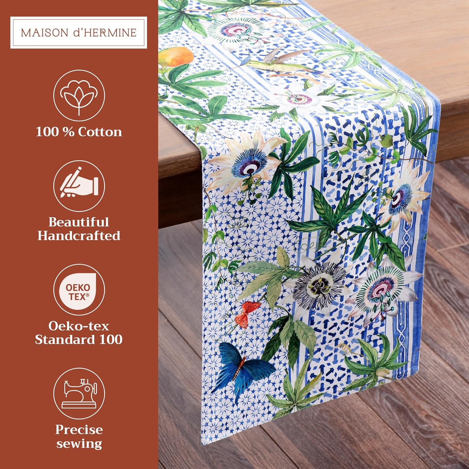 Maison d' Hermine Table runner 100% Cotton Double Layer Table Runners 72 inches long Decorative for Home Kitchen Dining Party Baby Shower Wedding Bridal Shower Spring Summer (Passiflora, 14.50" x 72")