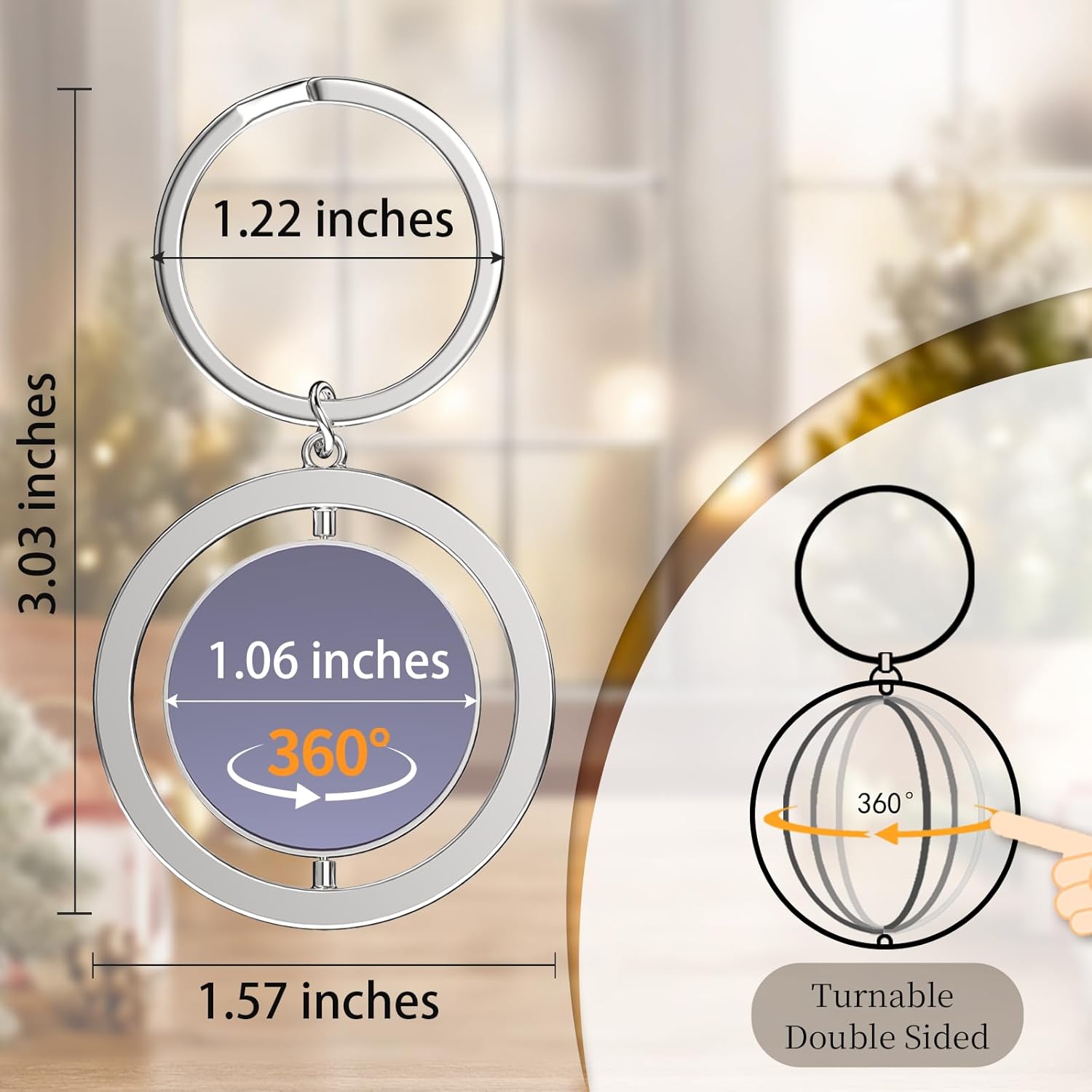 - 【Rotating Double Sided Custom Keychain】: Click "Customize Now" to start your own personalized keychain design. Customizable double-sided picture or single-sided picture, the label area can be rotated 360°, making the keychain more interesting