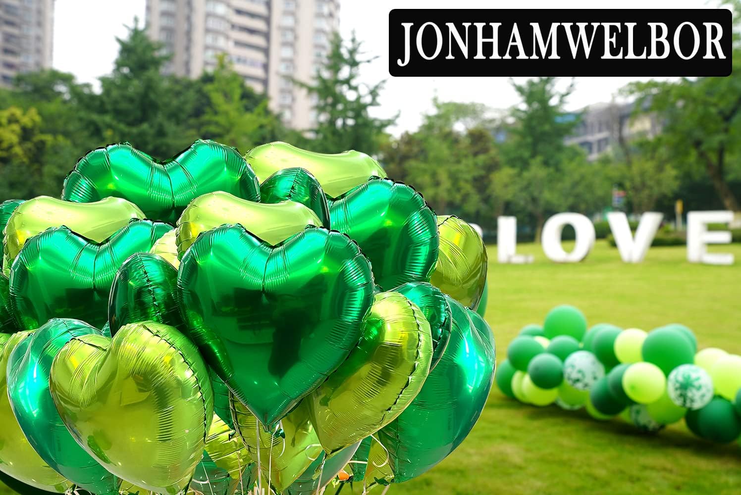 Jonhamwelbor 20Pcs 18 inch Green Foil Mylar Heart Shape Balloons Decorations Valentines Birthday Wedding Baby Shower Party (Emerald Green)