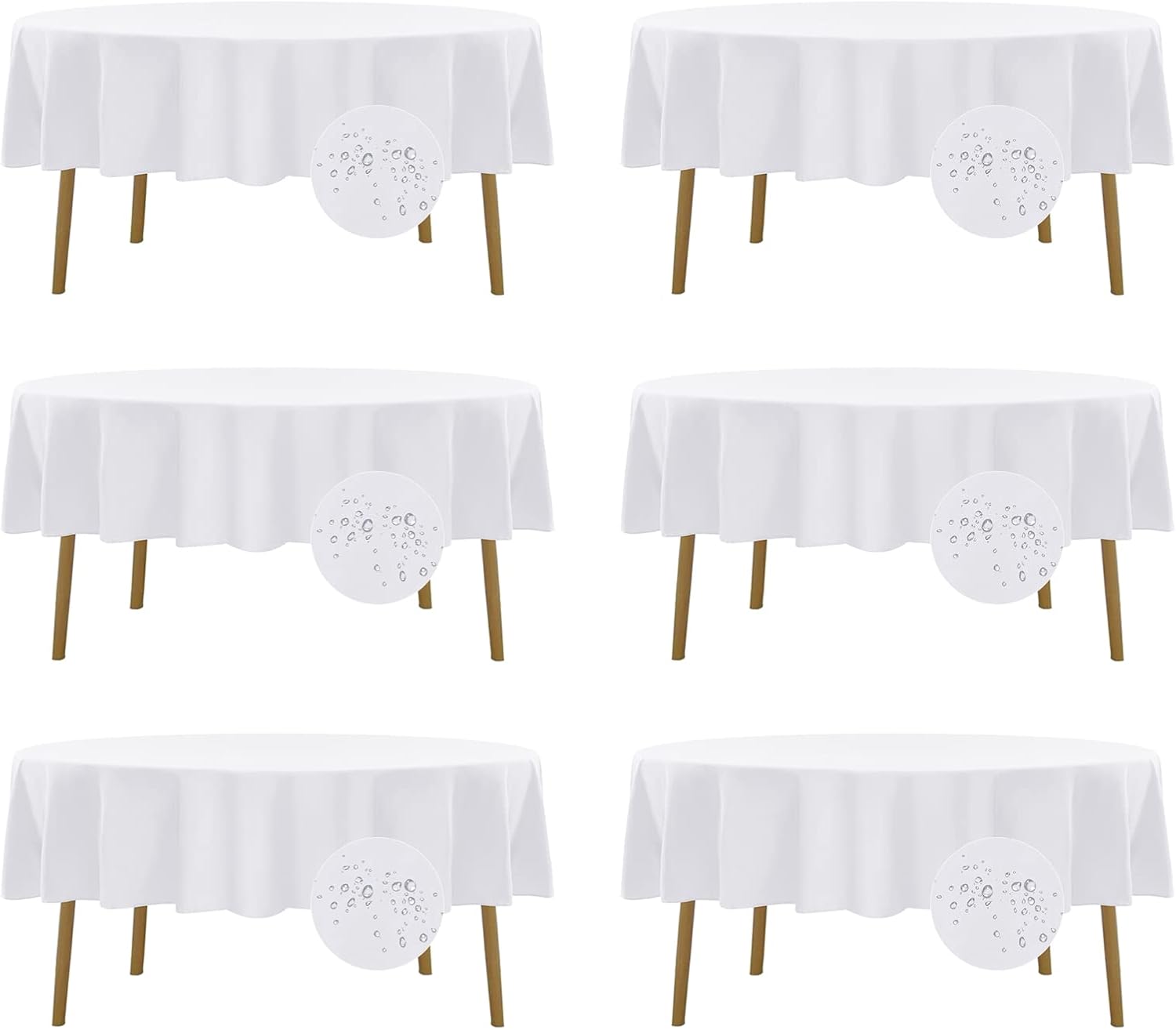 Fokitut 6 Pack Waterproof Round Tablecloth, 90 Inch, Stain Resistant and Wrinkle Polyester Table Cloth, Fabric Table Cover for Kitchen Dining, Wedding, Party, Holiday Dinner-White
