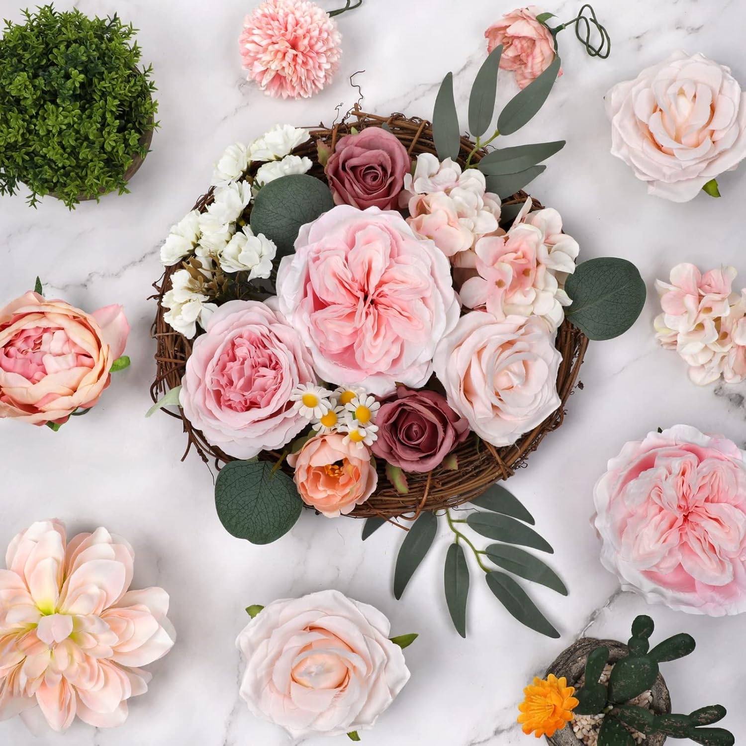 AmyHomie Pink Artificial Flowers Combo Silk Mix Peony Rose Hydrangea Daisy Fake Flowers w/Stem for DIY Wedding Bouquets Centerpieces Arrangements Table Decor Party Bridal Baby Shower Home Decor