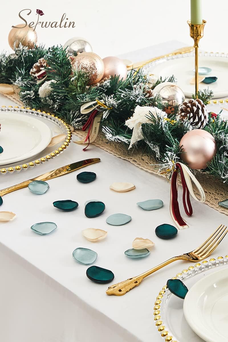 Serwalin 300Pcs Silk Rose Petals Flower Petals for Christmas Weddings Proposal Green Gold Petals Flower Girl Petals Aisle Flower Girl Basket Runner Bridal Shower Table Decor (3 Color Mixes)