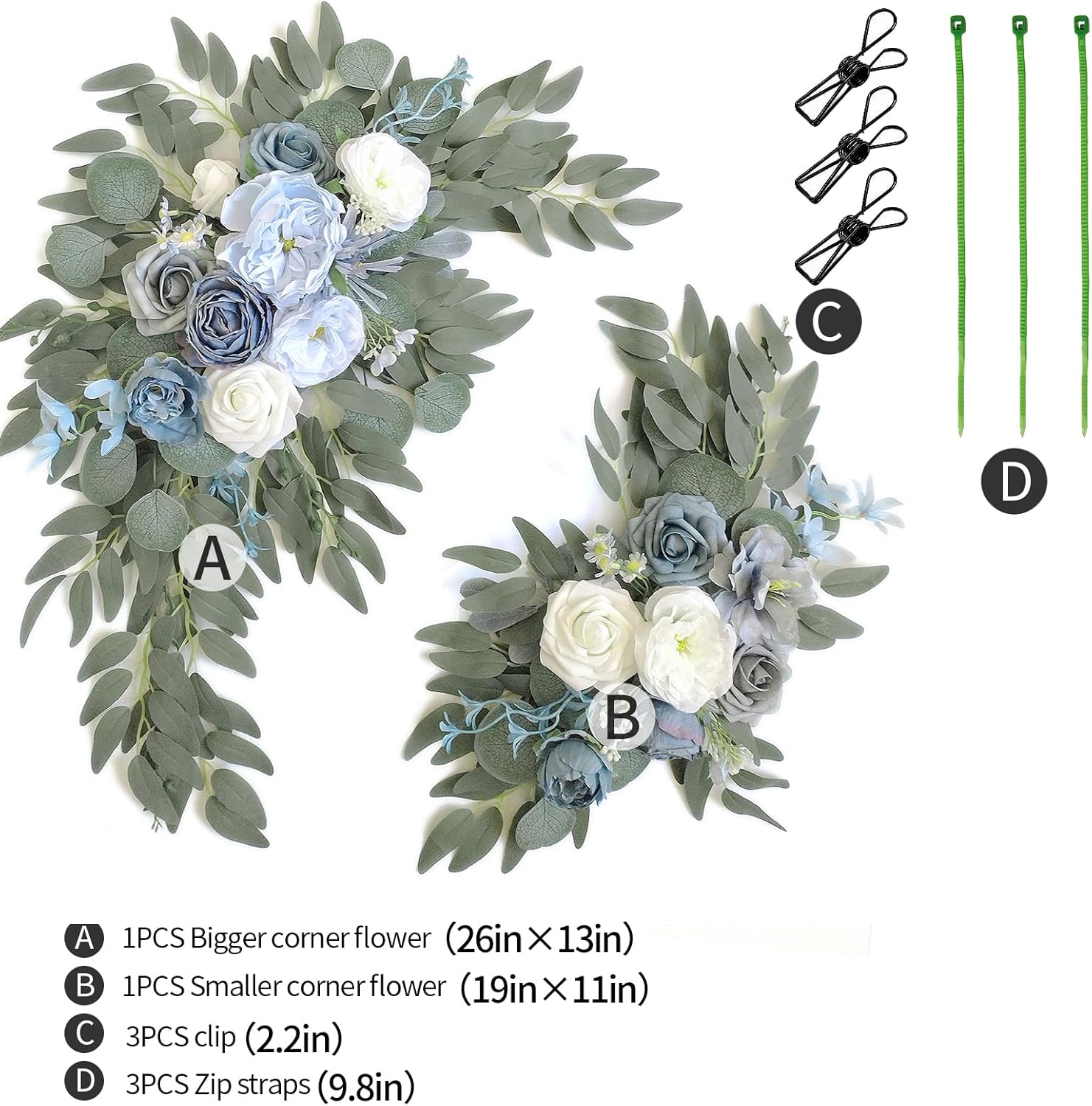 - ☘Material: This wedding flowers for arch is made of silk cloth and foam artificial flowers. They never wilt and look not only beautiful but very lifelike. Designed with a variety of elements for a rich sense of craftsmanship and design, perfect for your wedding arch decoration and welcome sign decoration.