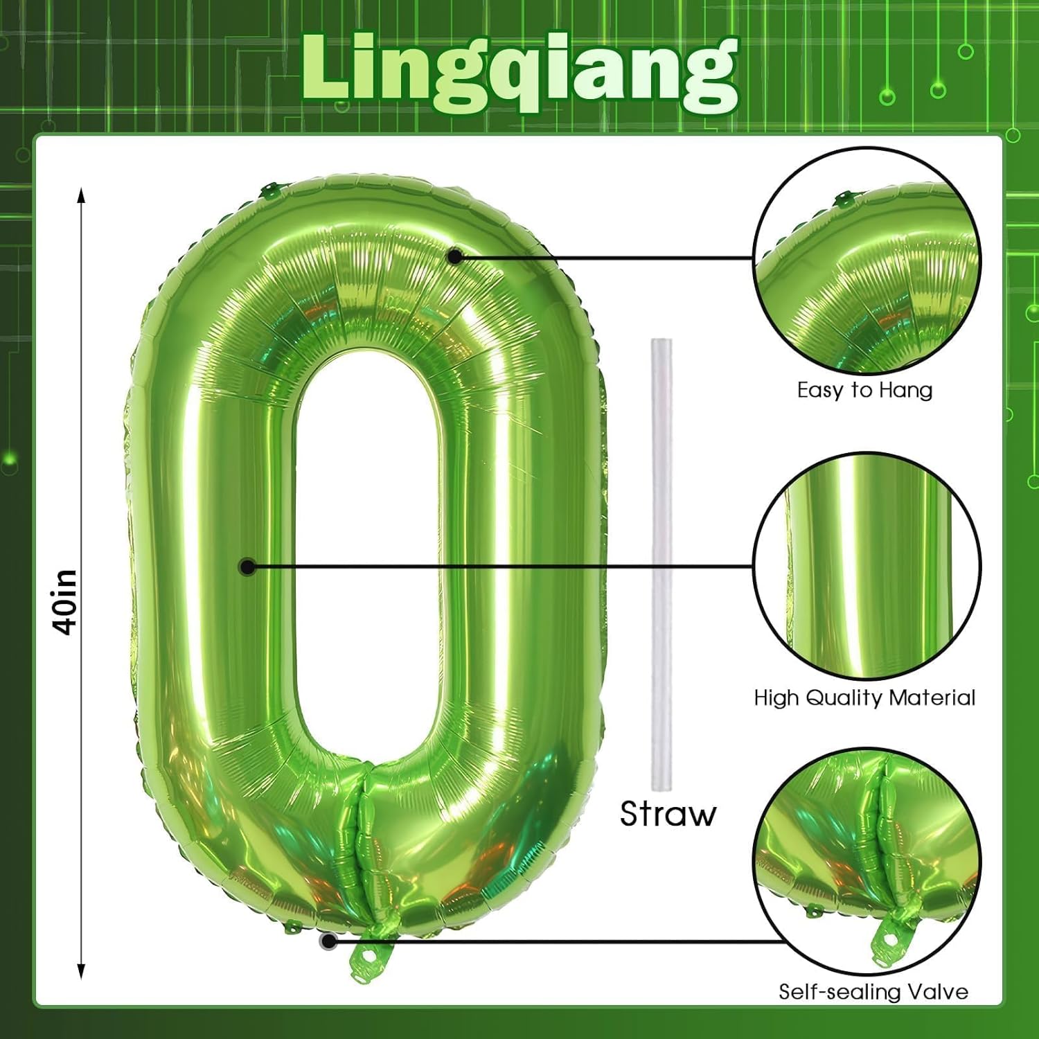 - š Green Number 0 Balloon š - You will get 1pc 40 inch mylar foil number 0 balloon and 1pc straw. Perfect for 10th 20th 30th 40th 50th 60th 70th birthday or anniversary party decorations supplies.