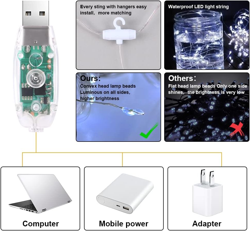 - 🌟【USB Powered】The fairy curtain light is powered by USB, this curtain light has a USB charging port. Curtain string lights can be plugged into a USB charger, making them suitable for powering in more places, even while camping or grilling. Or powered by a mobile power supply, laptop, mobile phone adapter, etc.