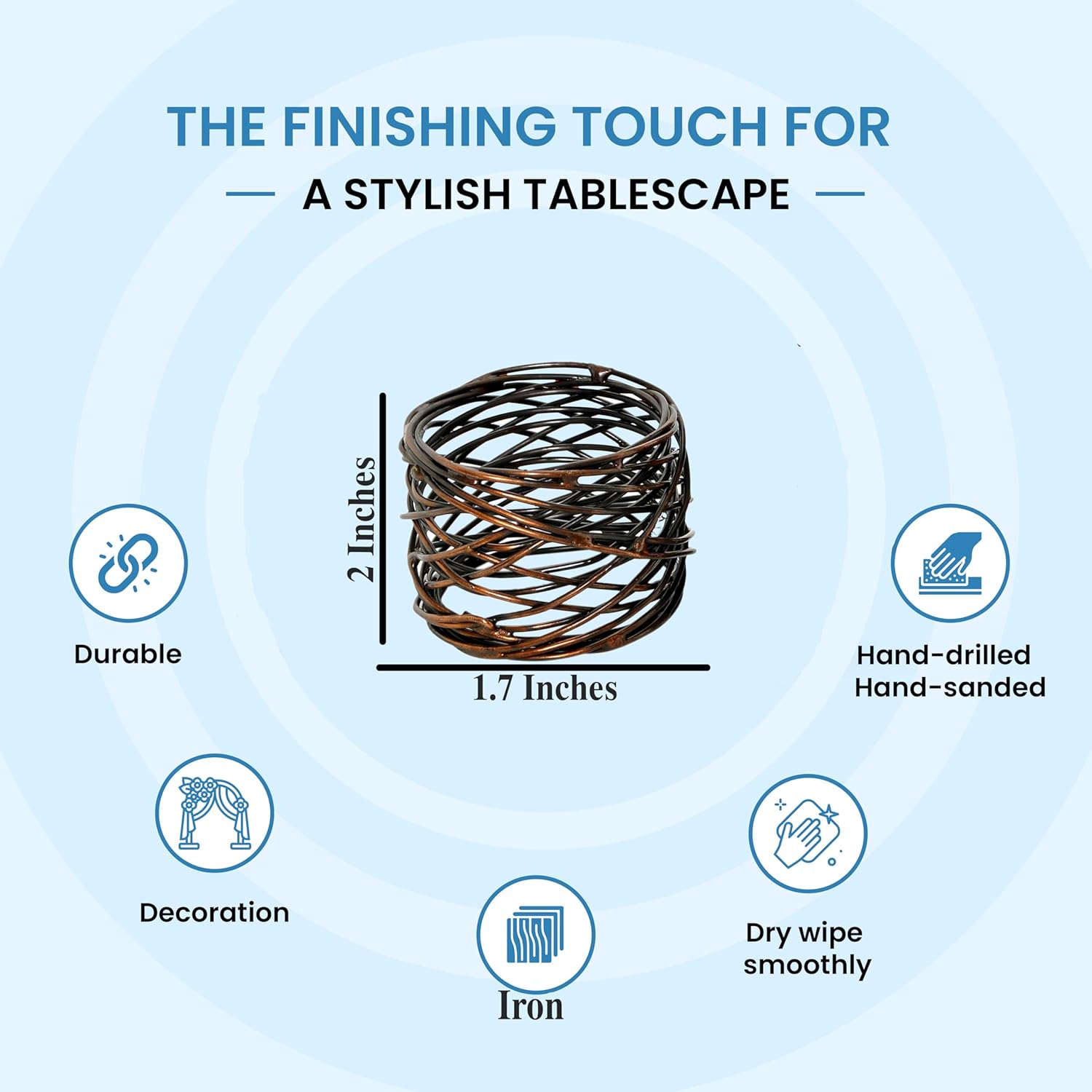 Twisted Wire Mesh Napkin Rings Holders Set of 12 - Heavy Duty Metal Napkin Rings for Décor, Dinner, Party, Wedding, Christmas, Gathering, Everyday Use, Gifting (Bronze) - CLEENTABLE