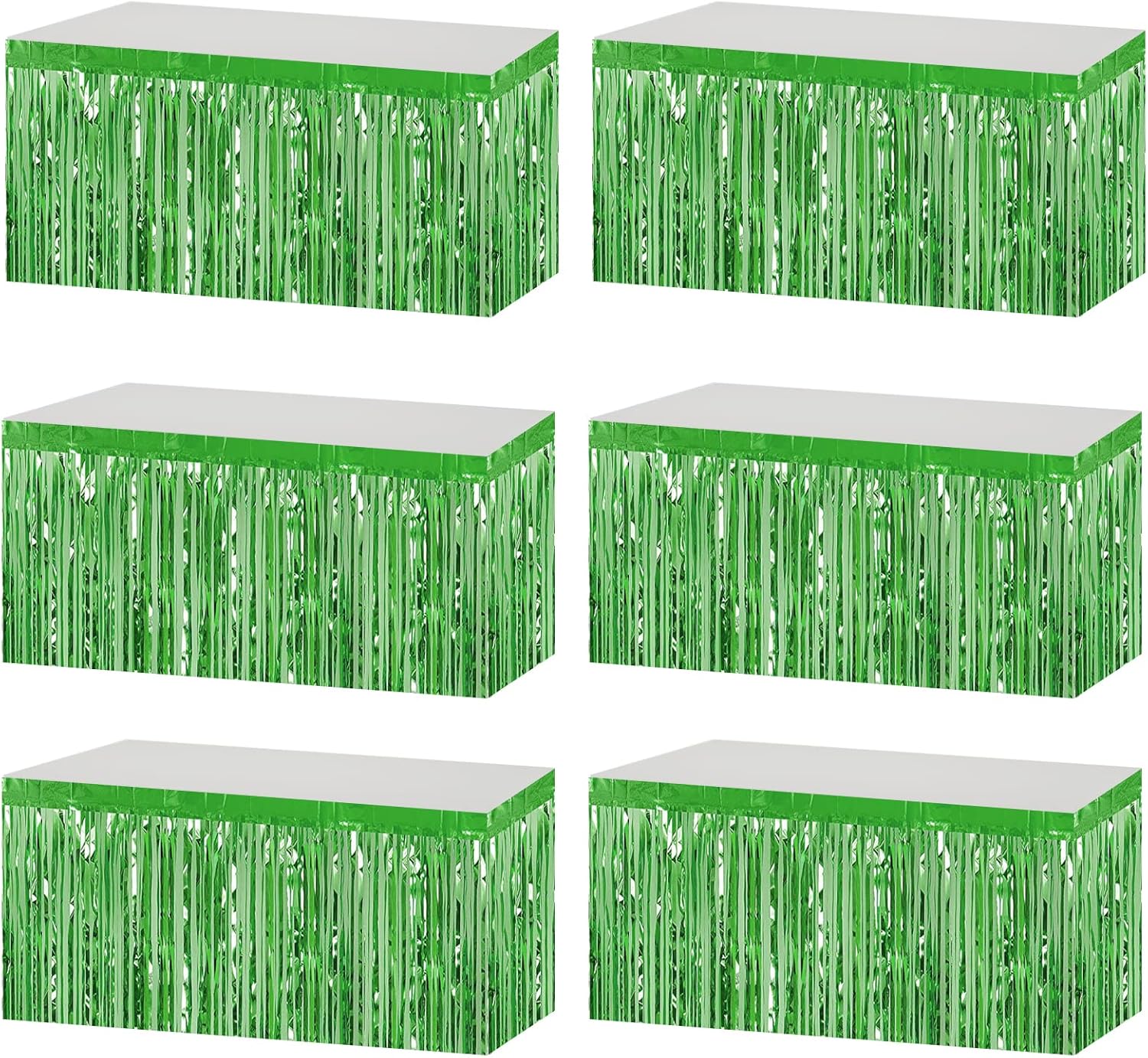 6 Pack 29x108 Inch Metallic Foil Fringe Tinsel Table Skirts Banner for Rectangle Tables Streamer Curtains Backdrop for Wedding, Birthday, Parade Floats, St Patrick Day Party Decoration(Light Green)