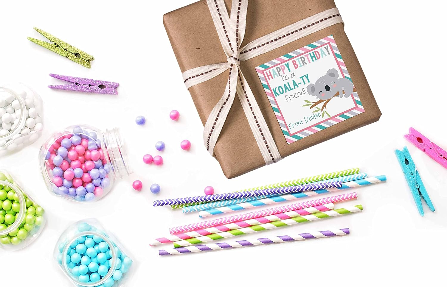 - Cuteness Overload: Designed by a talented mom, these fun stickers feature a cute koala design. The clever message of "KOALA-TY" birthday wishes is an adorable way to honor the birthday boy or girl. Each sticker will be custom printed and personalized just for you! Amanda Creation. Original design by Amanda Creation.