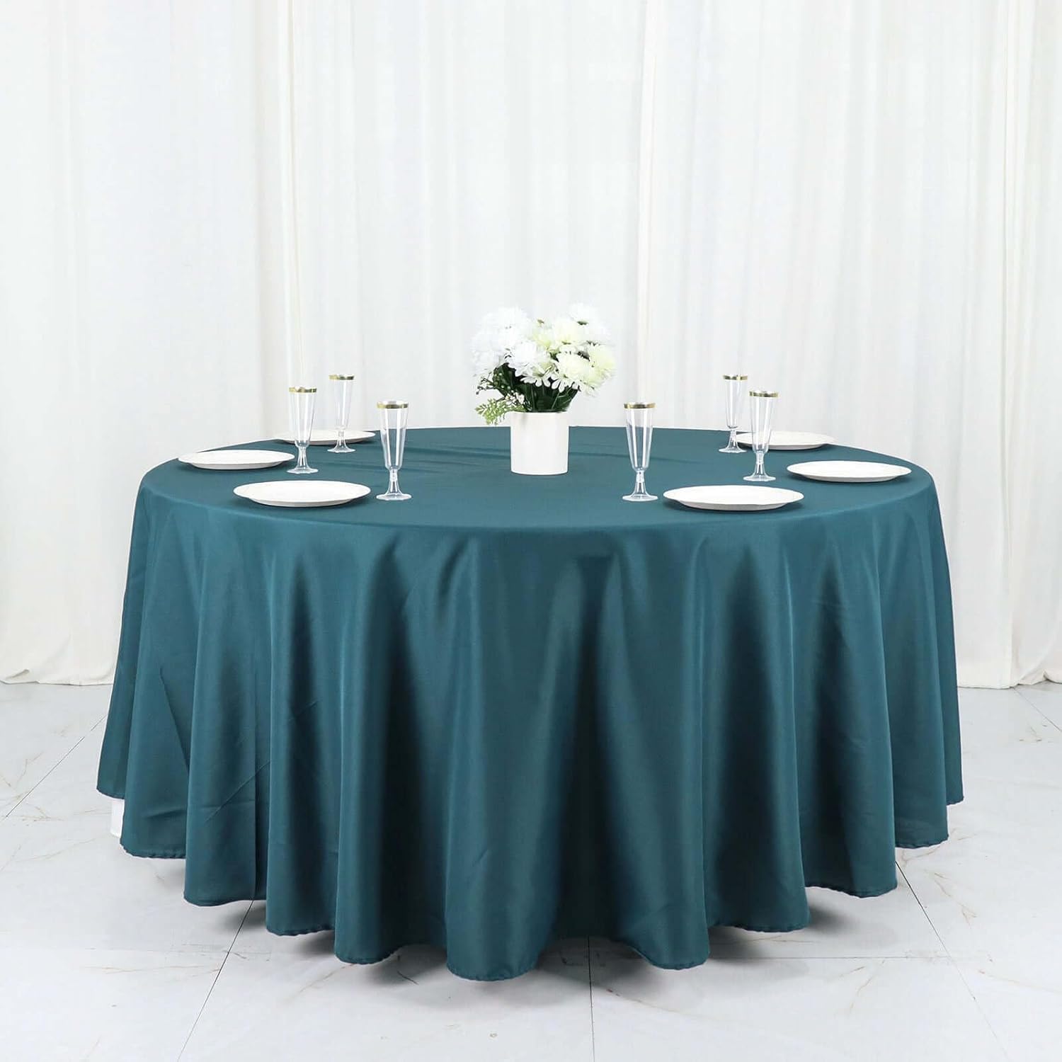 Efavormart Round Tablecloth, 108 Inch Stain & Wrinkle Resistant Washable Table Cloth, Decorative Polyester Fabric Table Cover for Banquet, Wedding, Dining- Peacock Teal Green