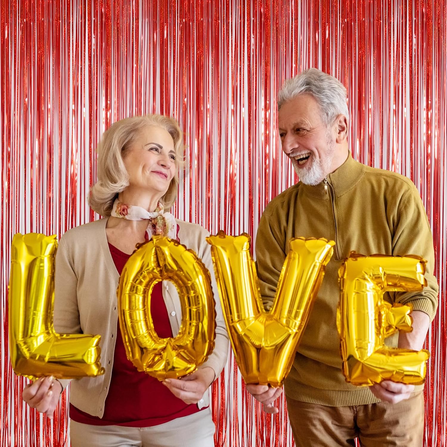- Value Pack of 2: Includes 2 packs red foil fringe curtains, enough to decorate your party backdrop and save your money. Each curtain is 3.2ft x 8ft. You can use 2 packs of the curtains side by side to make the backdrop larger, or overlap 2 pack of curtains to achieve a fuller and better look.