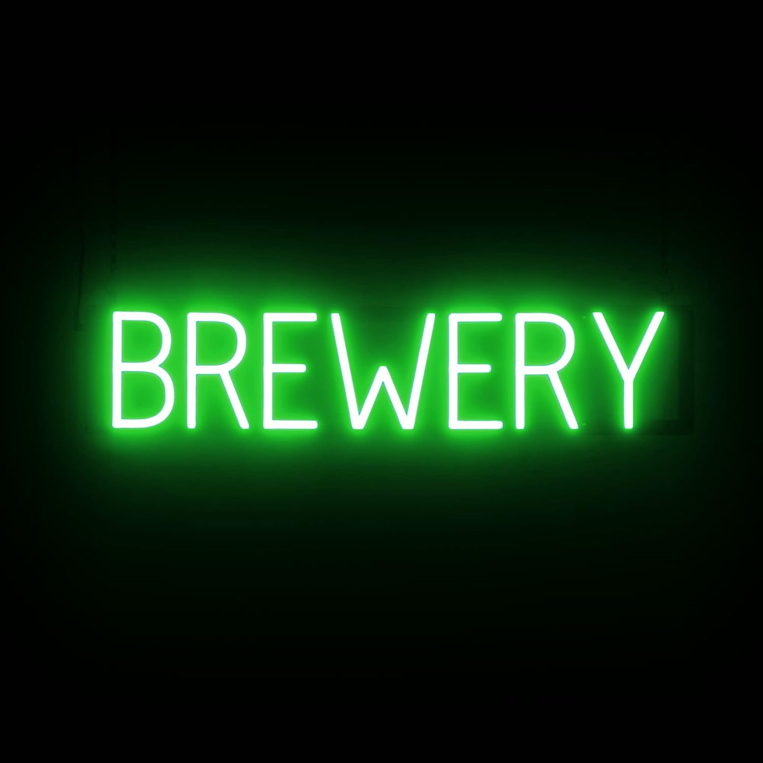 SpellBrite BREWERY Sign | Beer-Related Sign with Neon Look, Green LED Light Source | 29.1" x 6.3"