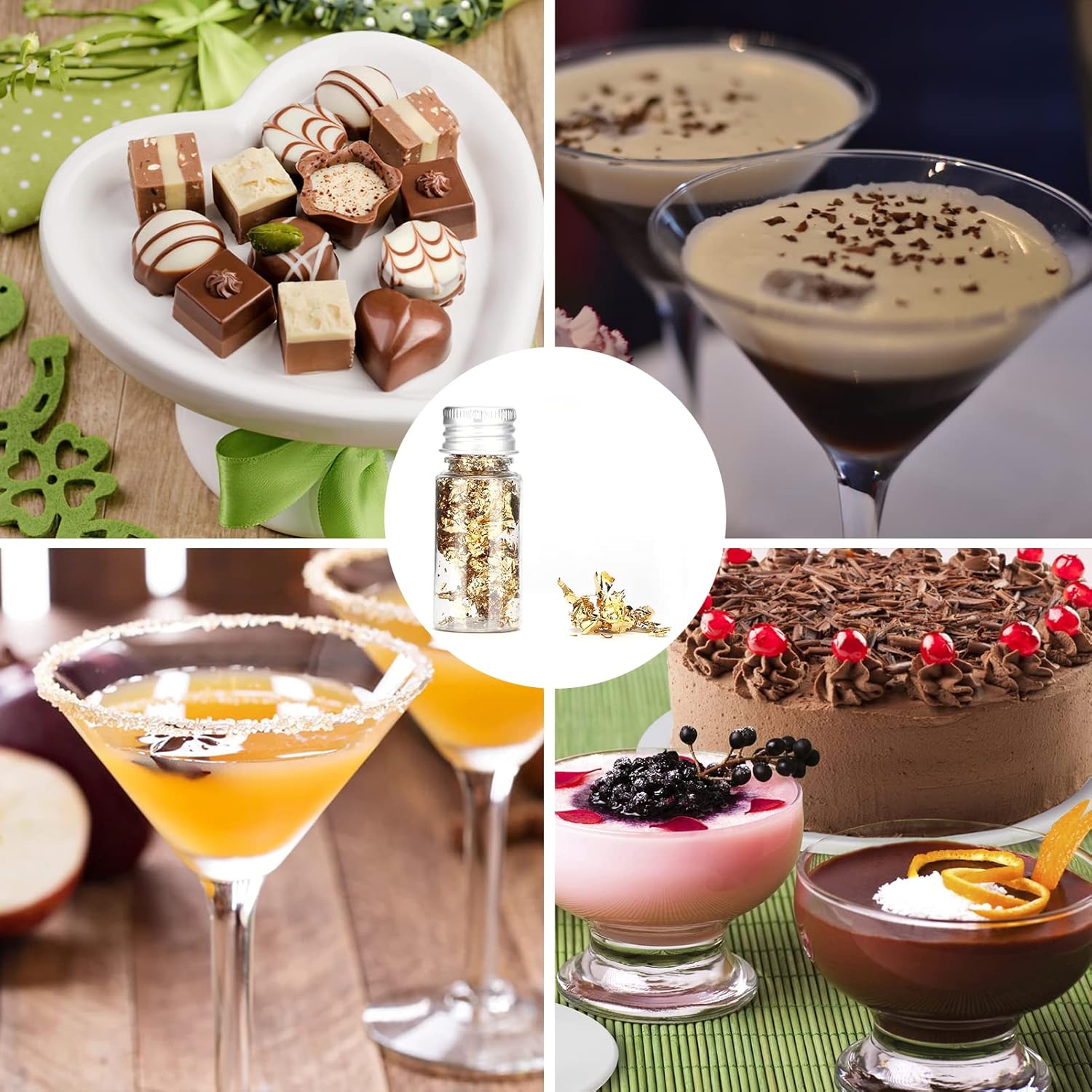 - Perfect Decoration For Food: Edible gold flakes is a perfect decorative items, can be added to coffee, tea, hot pot, seasonings, cosmetics, bath agents, etc. Gold leaf fakes beautiful and stylish, gold flakes for crafts can be widely used in families, bars, restaurants, etc