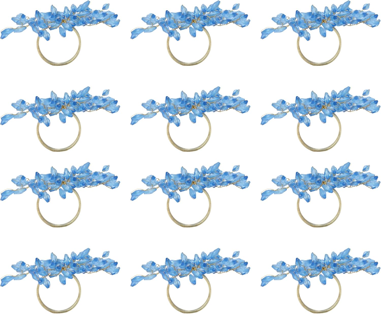 Napkin Rings Set of 6 for Dining Table Decoration Parties Everyday Metal Napkin Holder Leaf Turquoise (Pack of 6)