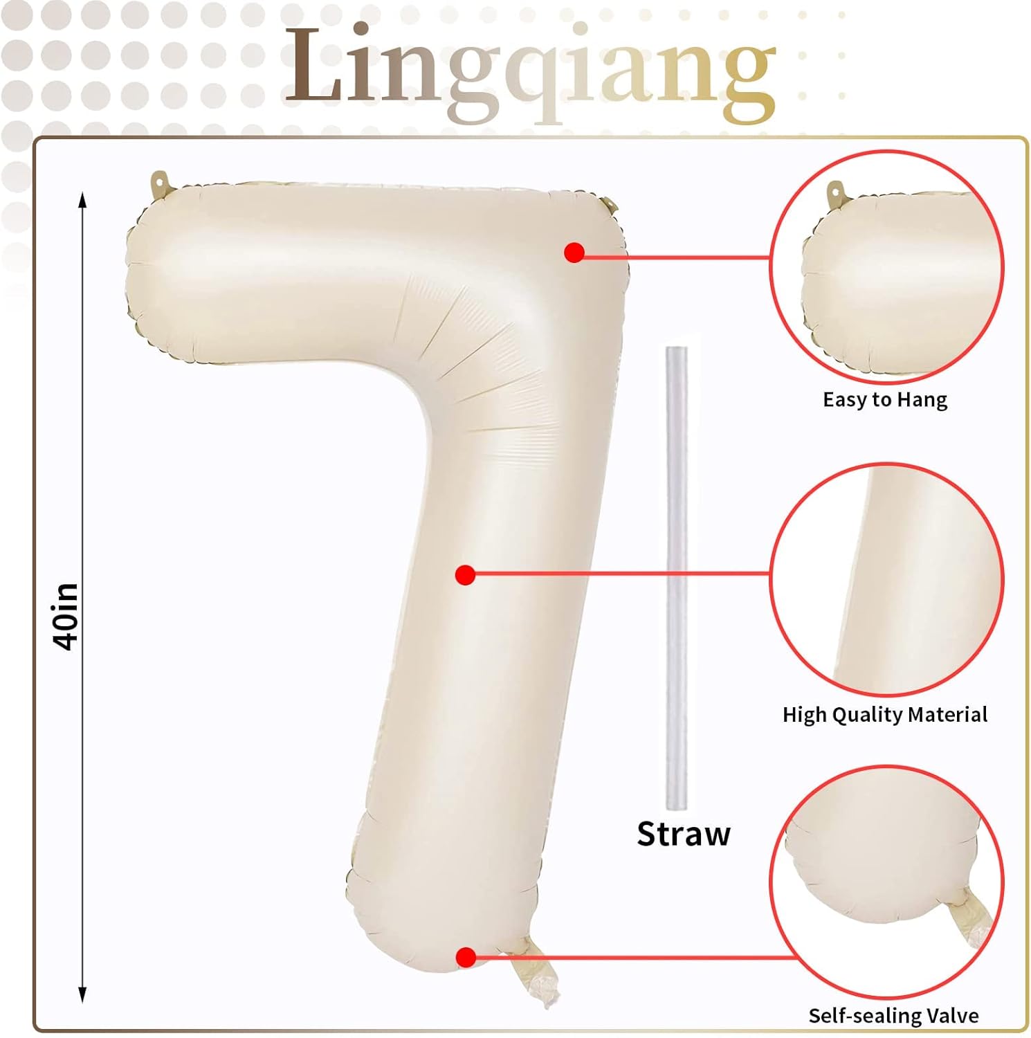 - š Beige Number 7 Balloon š - You will get 1pc 40 inch mylar foil number 7 balloon and 1pc straw. Perfect for 7th 17th 27th 70th 75th birthday or anniversary party decorations supplies.