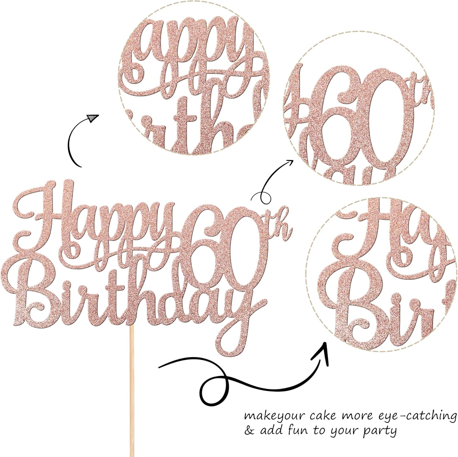 - Wide Usages ! The cake topper is perfect for happy 60th birthday theme party, cheers to 60 years birthday theme party cake decorations, they can make your cake more attractive and bring the fun to your party.You can also apply them for ice cream, fruits, cookies and other desserts.