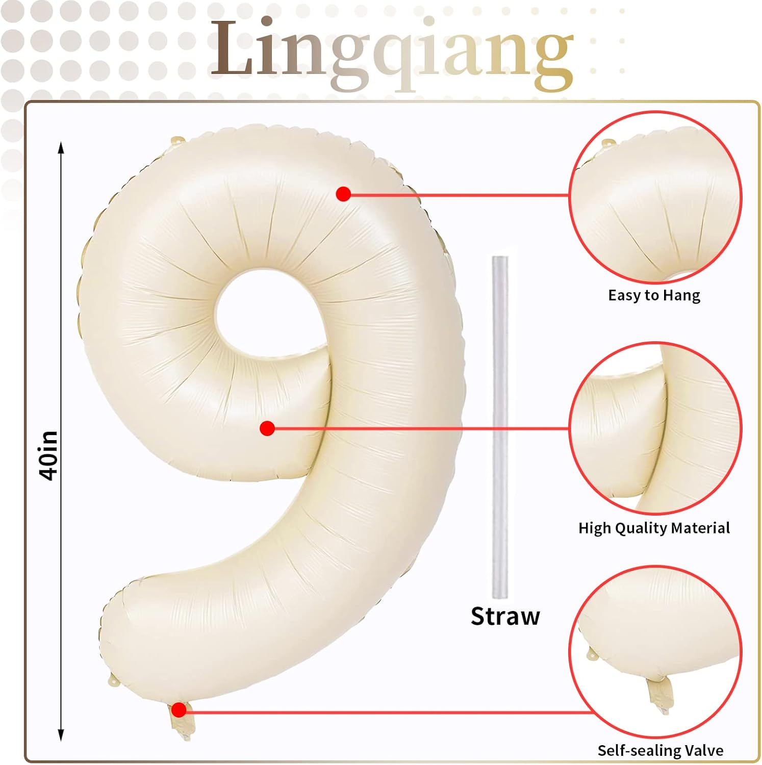 - š Easy to Inflate š - The big cream number 9 foil balloons have self-sealing valve does not need to be knotted for easy inflation and deflation. It can be inflated with air or helium. When filled with helium, the balloons can float in the air; after filling, press the valve of the digital balloon to seal it. It can be reused. Do not throw away after use!