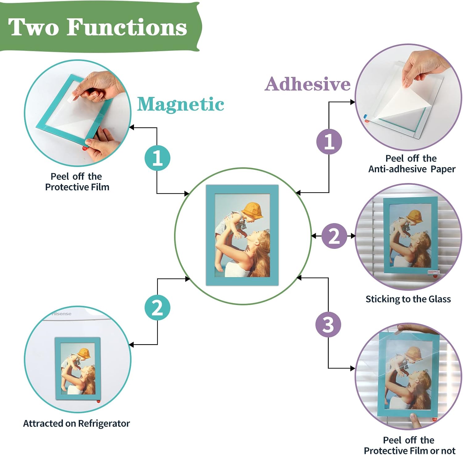 - 6 colors highlight your pictures, brighten your fridge, showcase your memories vividly. 12 packs of magnetic peel and stick frames meet your home decor and business needs at one time.