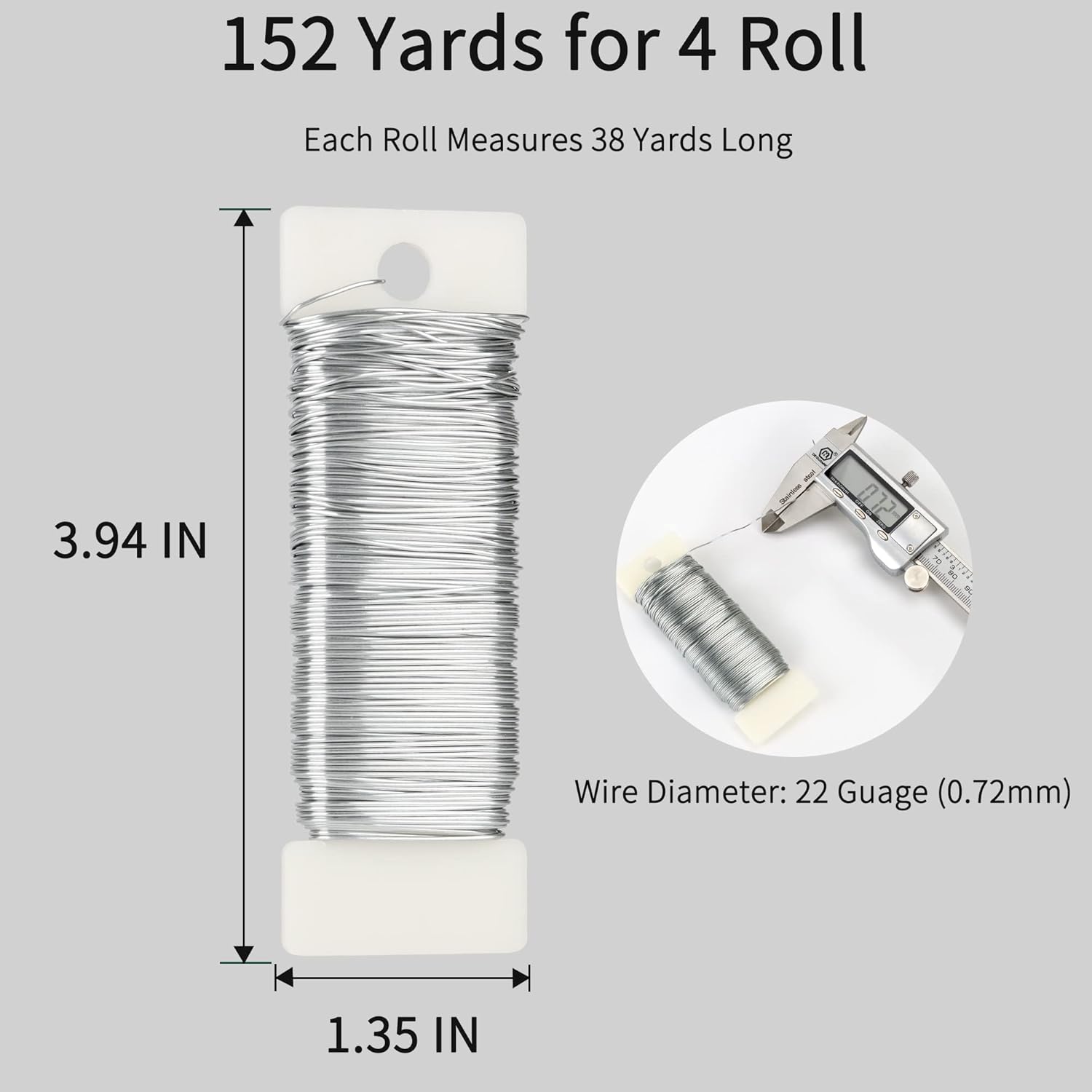 Silver Floral Wire - 152 Yards, 22 Gauge, Flexible for Flower Arrangement, Garland, Wreaths, Plant Crafts