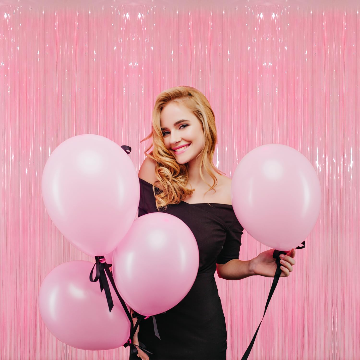 GOER 3.2 ft x 8.2 ft Metallic Tinsel Foil Fringe Curtains Party Photo Backdrop Party Streamers for Birthday,Graduation,New Year Eve Decorations Wedding Decor(4 Packs,Candy Pink)