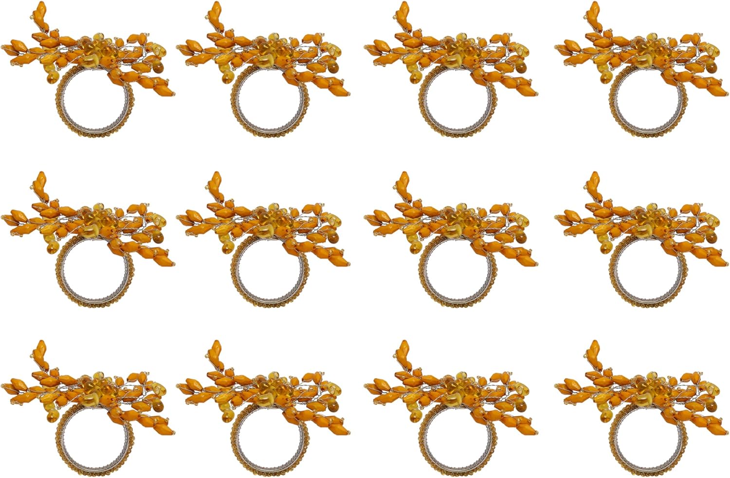 Napkin Rings Set of 12 for Dining Table Decoration Parties Everyday Metal Napkin Holder Leaf Gold (Pack of 12)