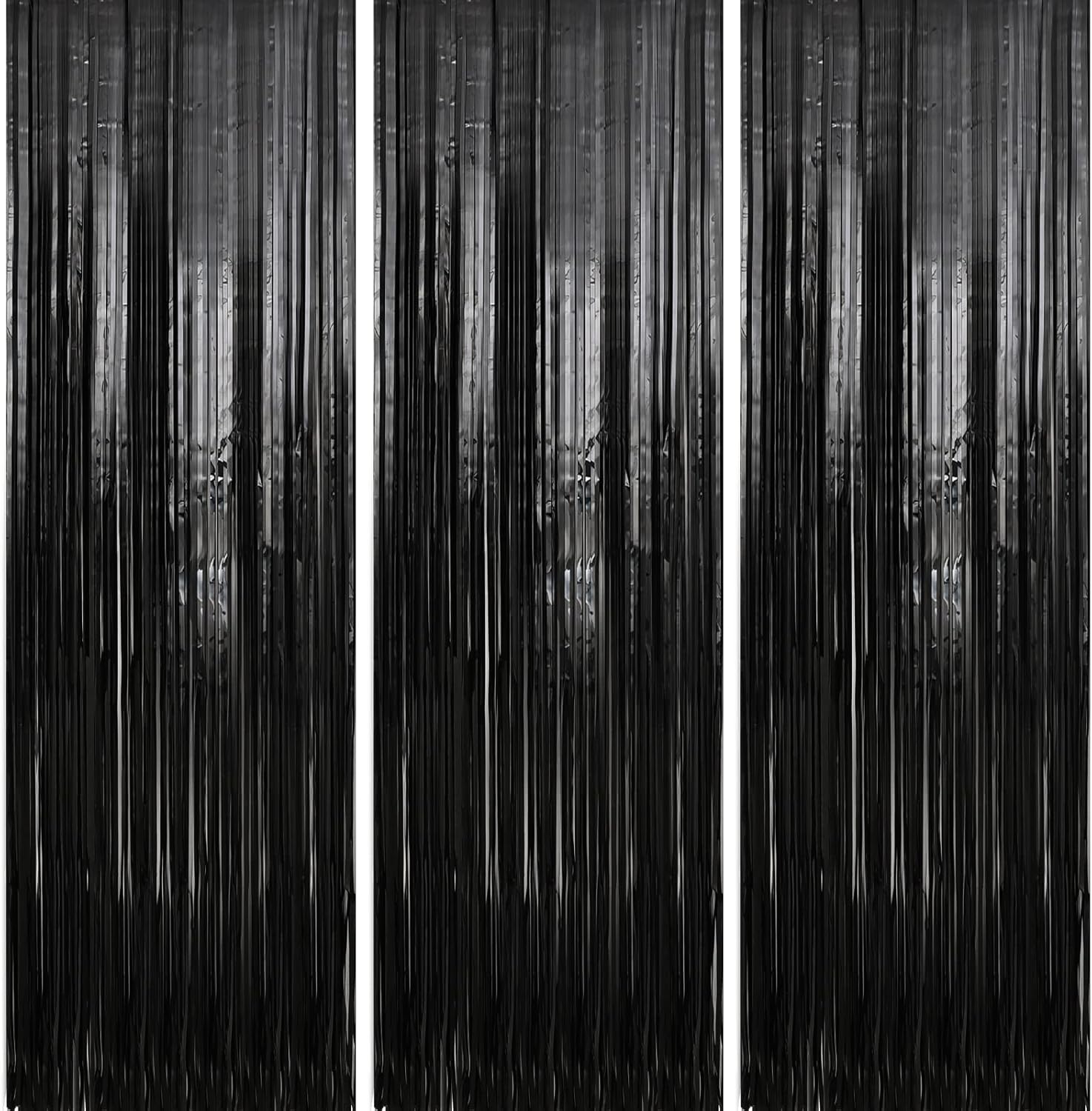 Crosize 3 Pack 3.3 x 9.9 ft Black Foil Fringe Backdrop Streamer Curtains, Birthday Party Decorations, Tinsel Curtain for Parties, Photo Booth Backdrops, Party Decor