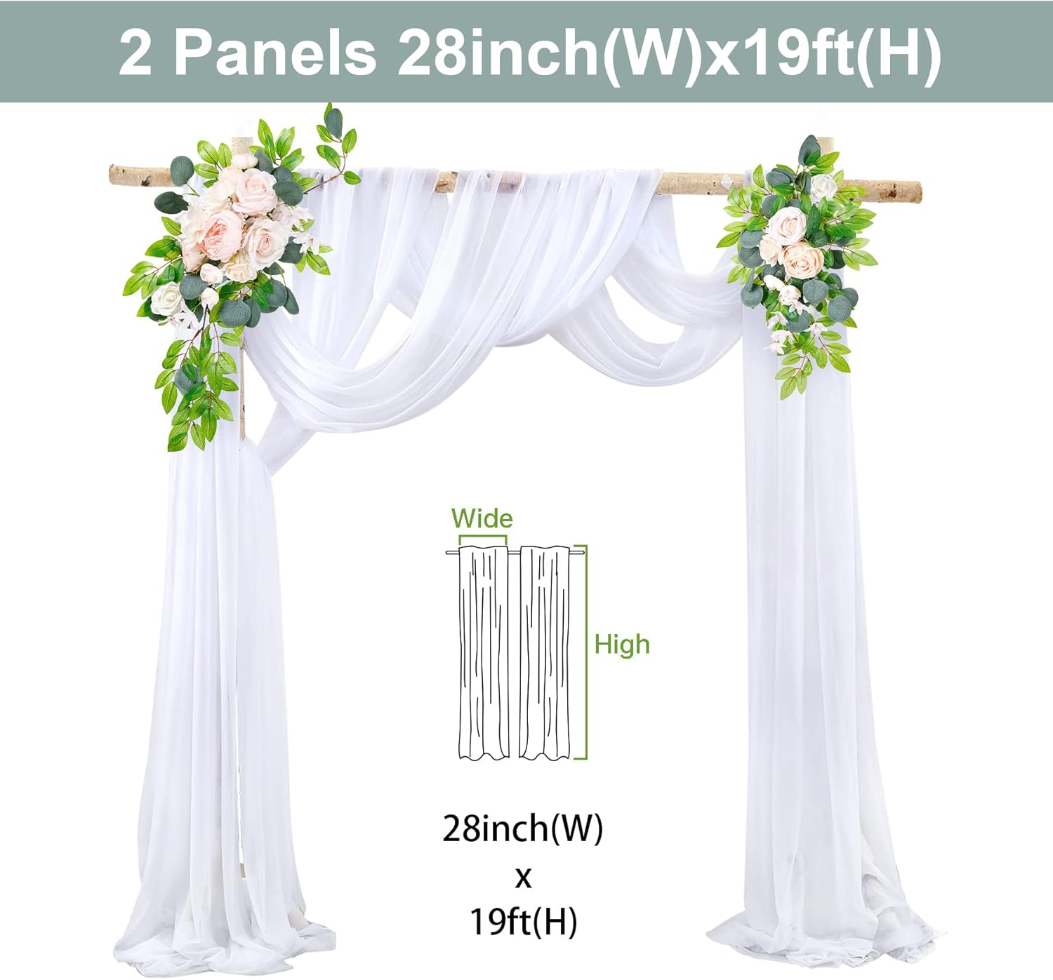 2 Panels Wedding Arch Draping Fabric White Sheer Backdrop Curtain Arch Drape for Wedding Ceremony Reception,Bridal Shower Party Decorations 28" X 19ft