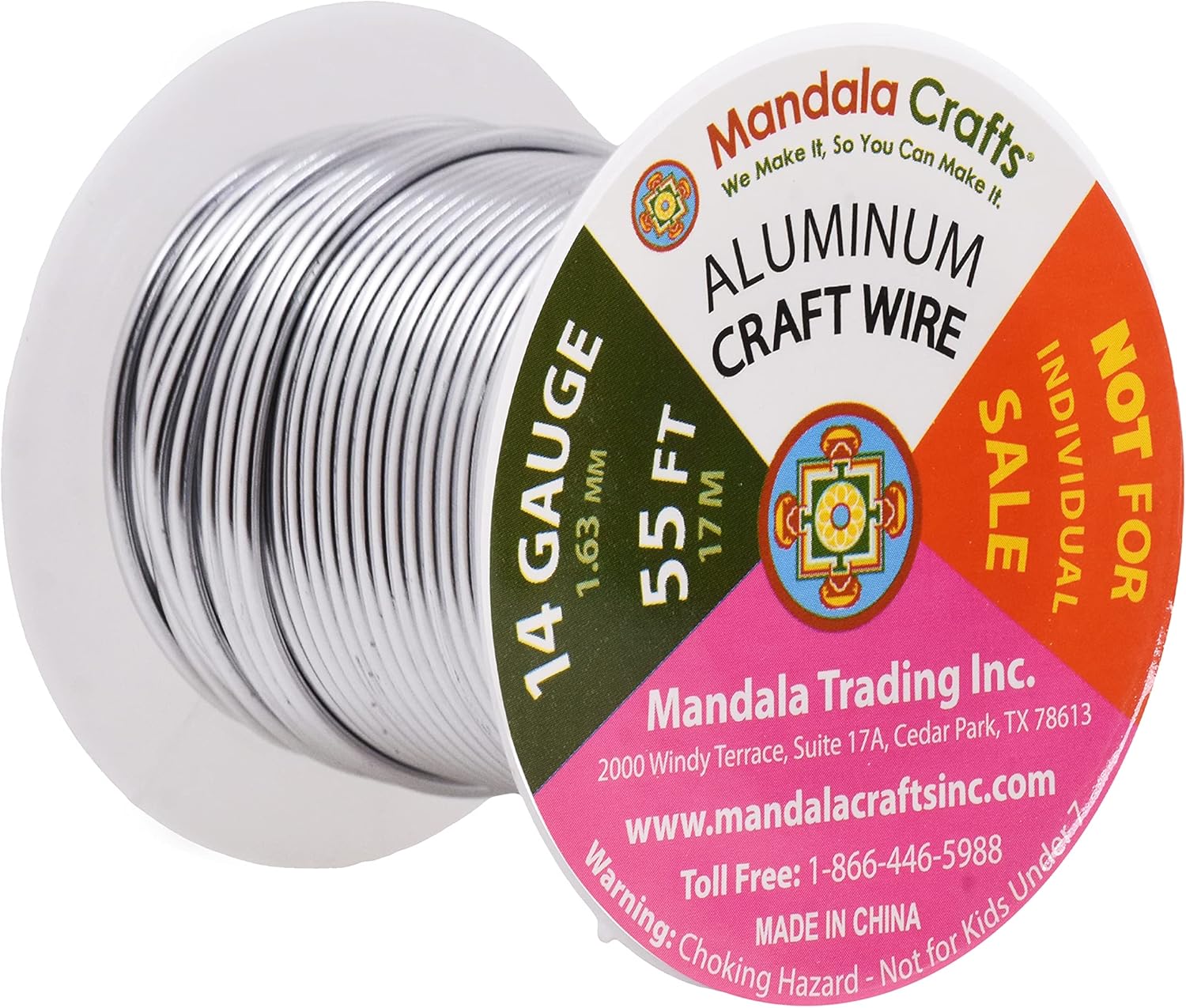 Mandala Crafts 14 Gauge Anodized Aluminum Craft Wire for Jewelry Making – 330 FT Colored Flexible Silver Copper Light Gold Gray Gold Red Wire - Bendable for Bonsai Armature Crafting Sculpting