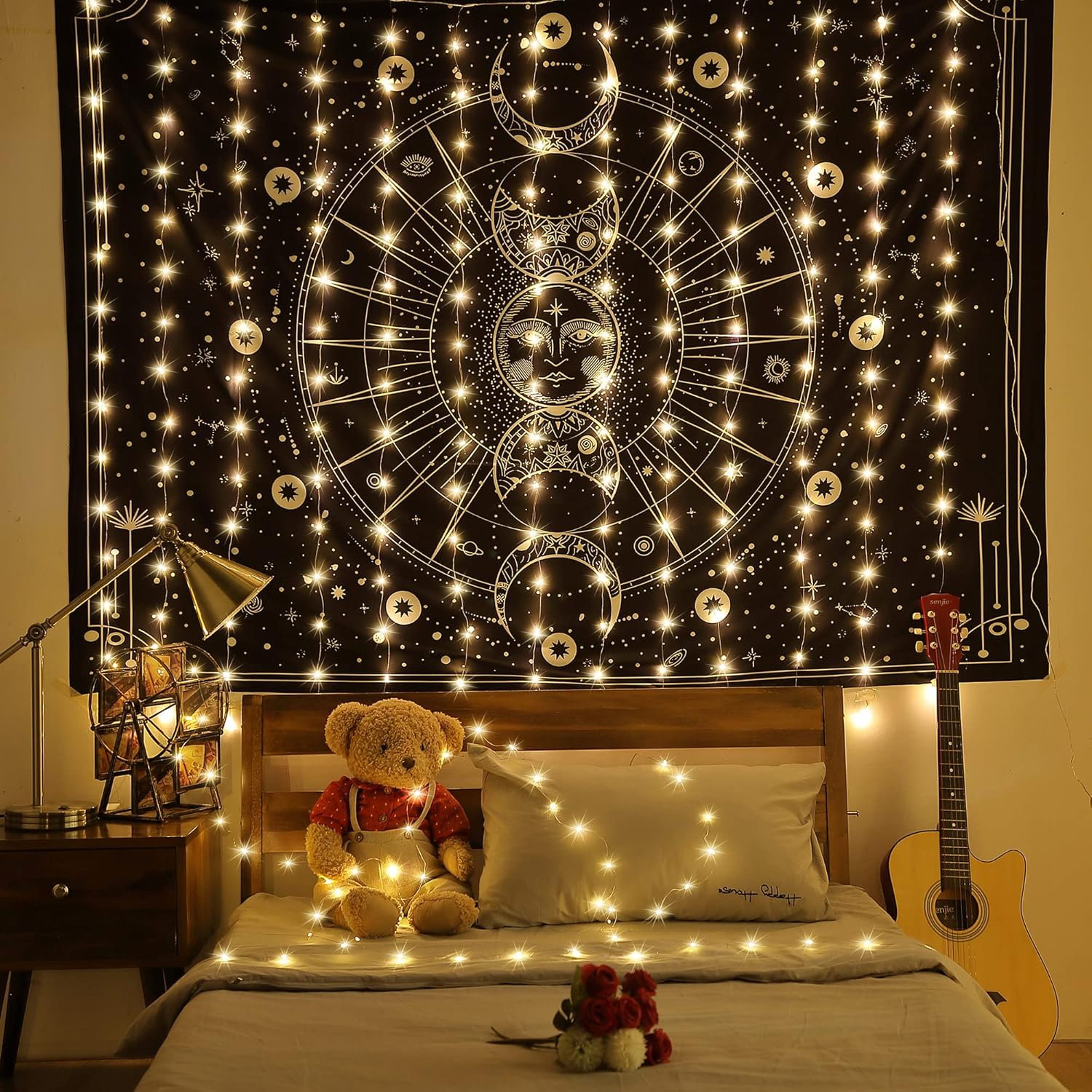 - [Easy to Install and Use] these wall hanging fairy string lights have 10 hooks to help you hang the tapestry fairy light curtains stably. Each light strand is tied with a rope. To make your installation more efficient, suggested that hanging these fairy string lights up first and then undoing the light bundles once the main strand is hung
