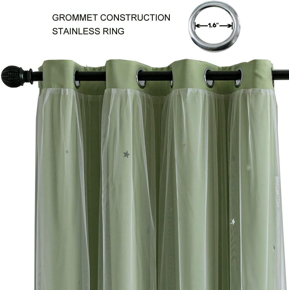FANLI 2 Panels Star Blackout Curtains for Kid Girls Bedroom Living Room Darking Stripe Double Layer Star Cut Out Wall Home Decor Gradient Grommet Window Curtains (Green 63L)