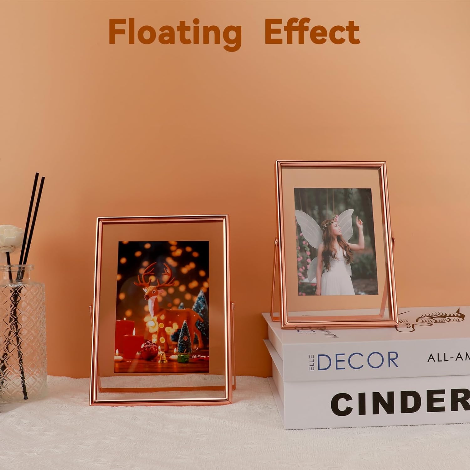 Rose Gold Floating Frame, 4"x6", Vertical, For Picture 3.5x5, 3x4, 2x3, Mini Tabletop Photo Frame, Classy For Festival, Wedding, or Birthday, Home or Office Decoration